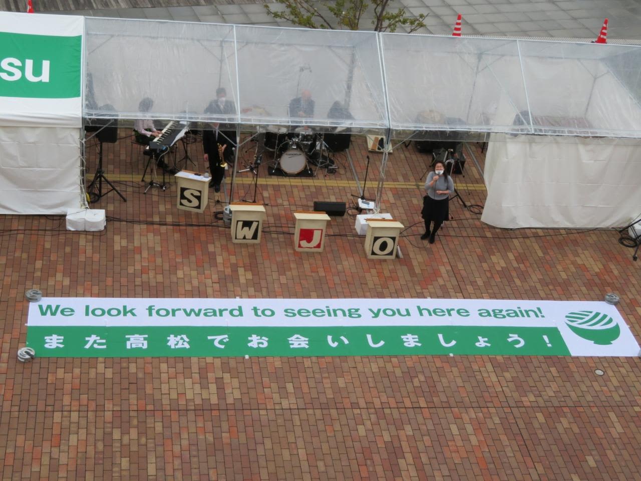 岸壁では生演奏付きで見送りのセレモニー。