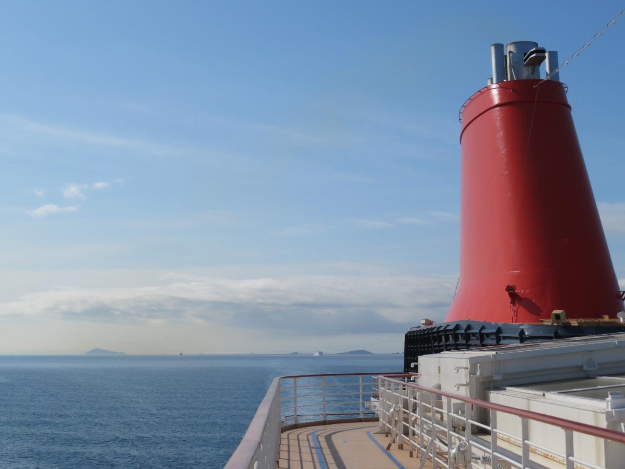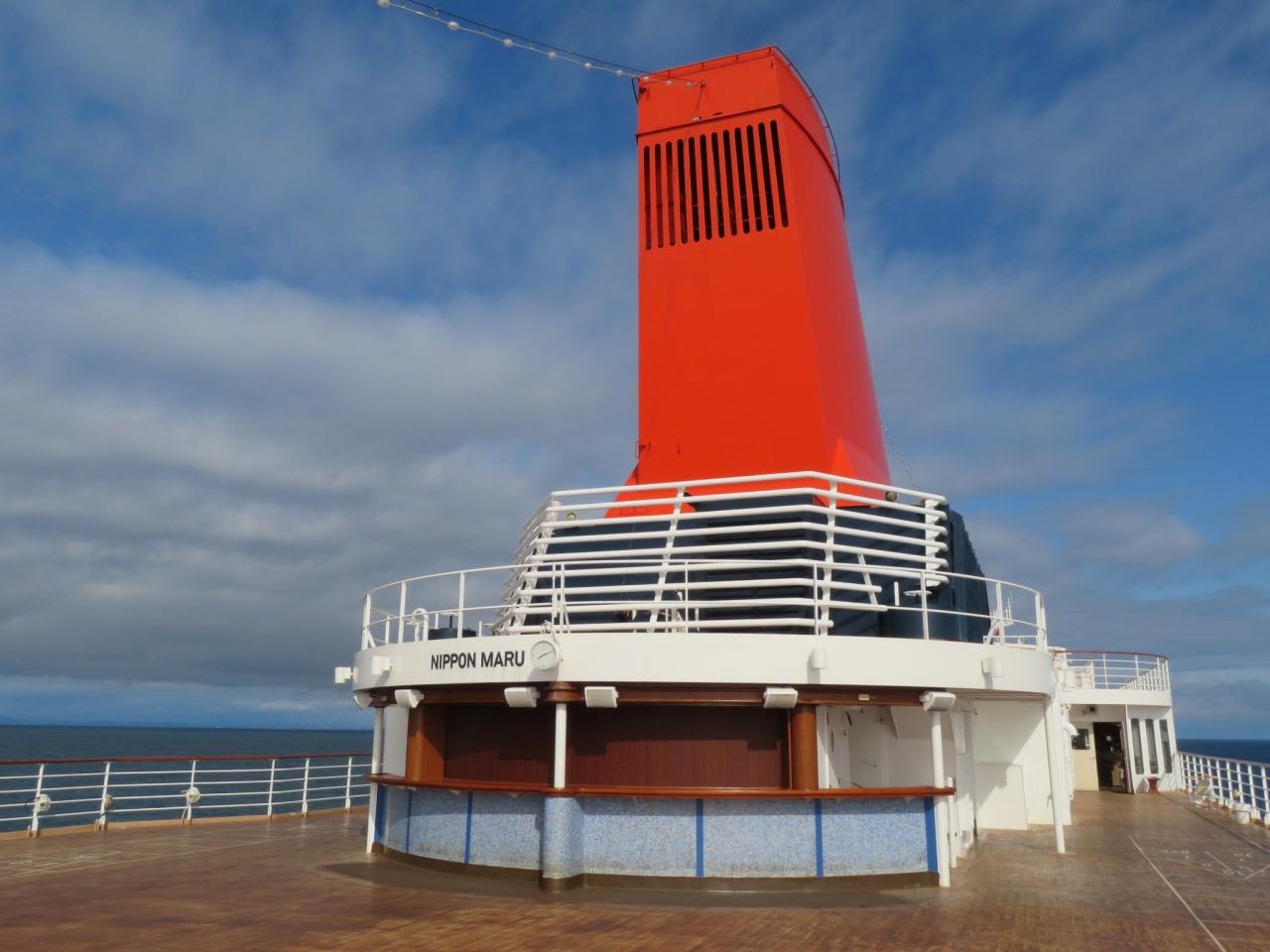 にっぽん丸のファンネルと航跡