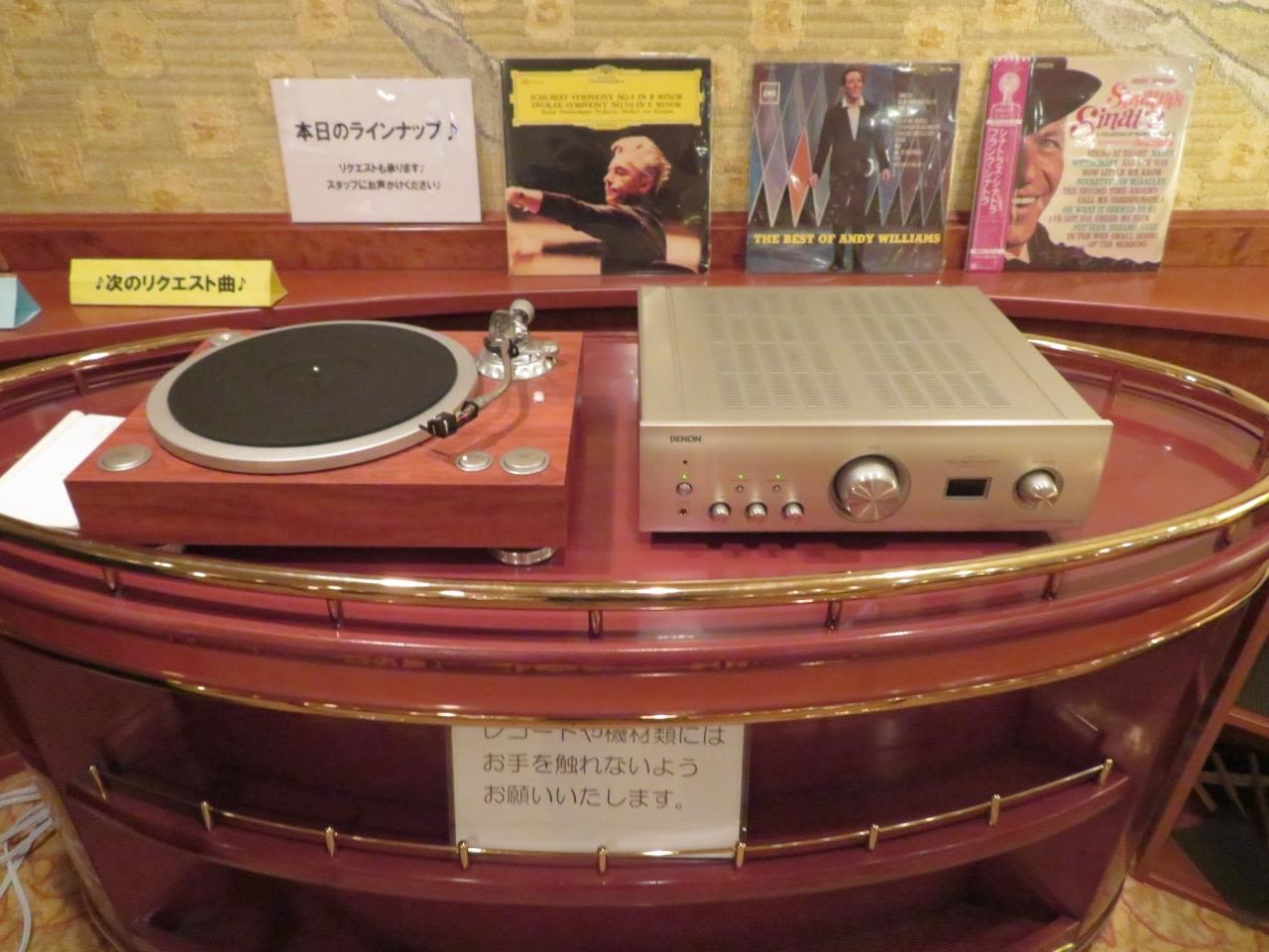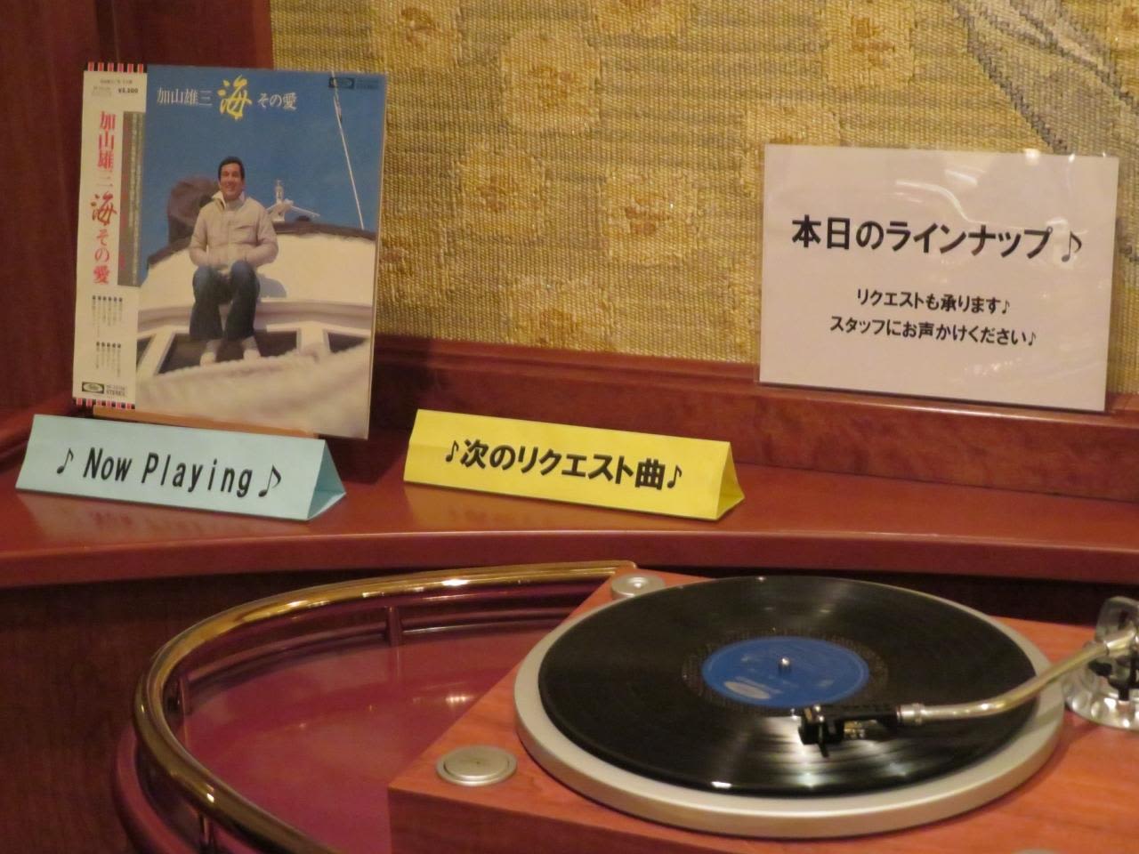 ラウンジ『海』ではLPレコードプレーヤーで懐かしい昭和時代のLPレコードも聴かせてくれる。