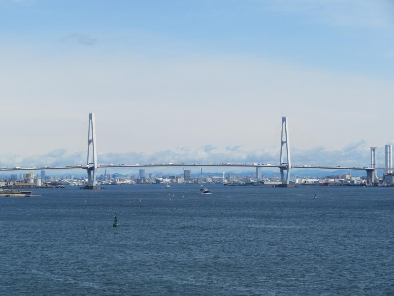 名港中央大橋と名古屋の町が見えてきました。