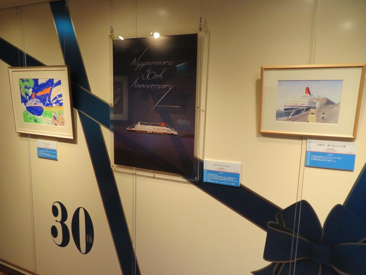 にっぽん丸ギャラリーでは3代目にっぽん丸就航30周年を記念して、にっぽん丸に関する展示作家の作品が展示されていました。