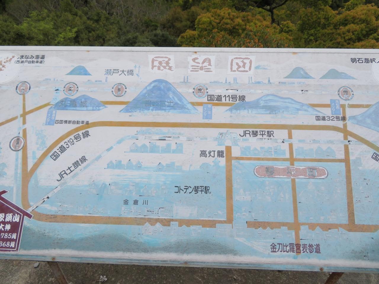 前方にはJR土讃線が走り、遠くには瀬戸大橋や明石海峡が見えて素晴らしい眺望