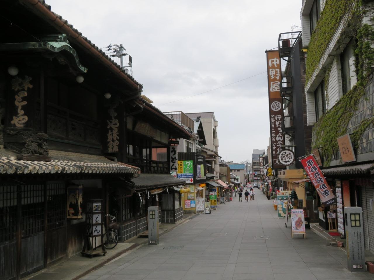 参道横に並ぶ多くのお店では参拝客のために「杖」の無料貸出を行っており、皆さん「杖」を持って歩いています。