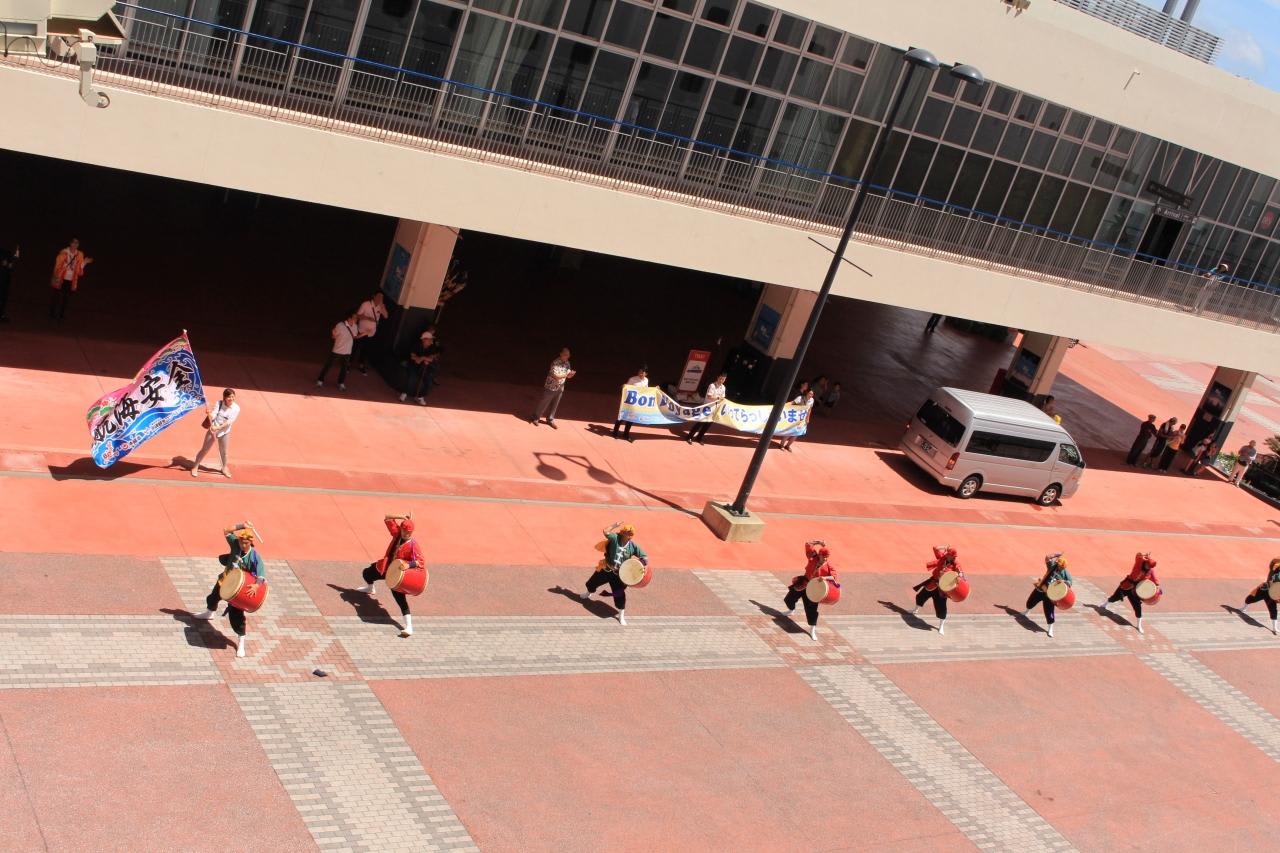 午前7時に那覇・泊埠頭の若狭岸壁に入港。出港は午後2時ということで滞在時間は短くオプショナルツアーには申込まず、沖縄では唯一のモノレール(愛称:ゆいレール)全線乗ることを目的に行動しました。終点の首里駅まで乗車し、那覇観光では定番の首里城跡に行きました。かつては国王の居城で琉球国の政治・経済・文化の中心地で世界遺産として正式登録されているだけに見応えがありました。城と言っても日本の城とは構造が違い、新鮮な感じがしました。首里城観光の後は ゆいレールの終点・那覇空港駅まで乗車し、モノレール高架の車窓から那覇の市街地眺望を楽しみました。