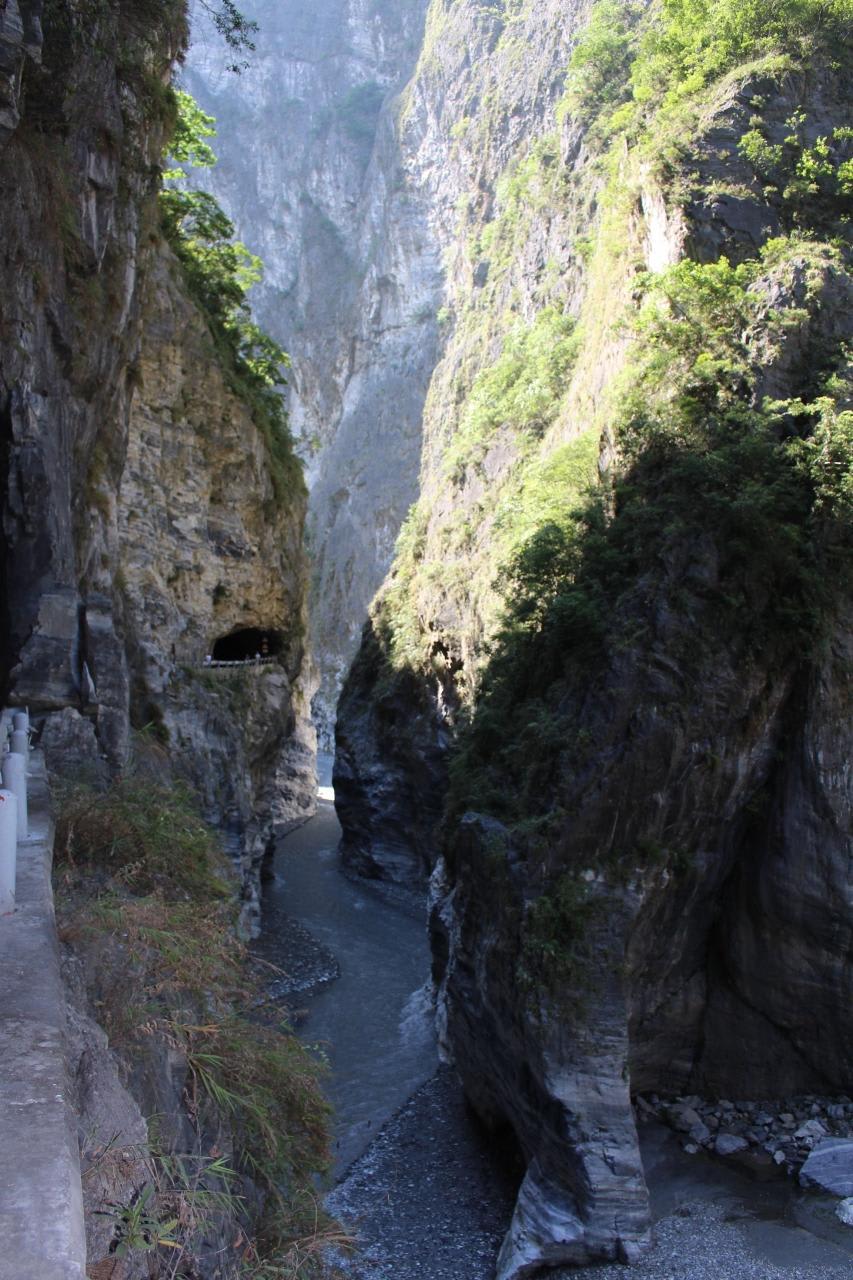 大昔は珊瑚礁だったのが地殻変動で隆起してできた大理石の断崖絶壁を九曲洞遊歩道から観賞。
