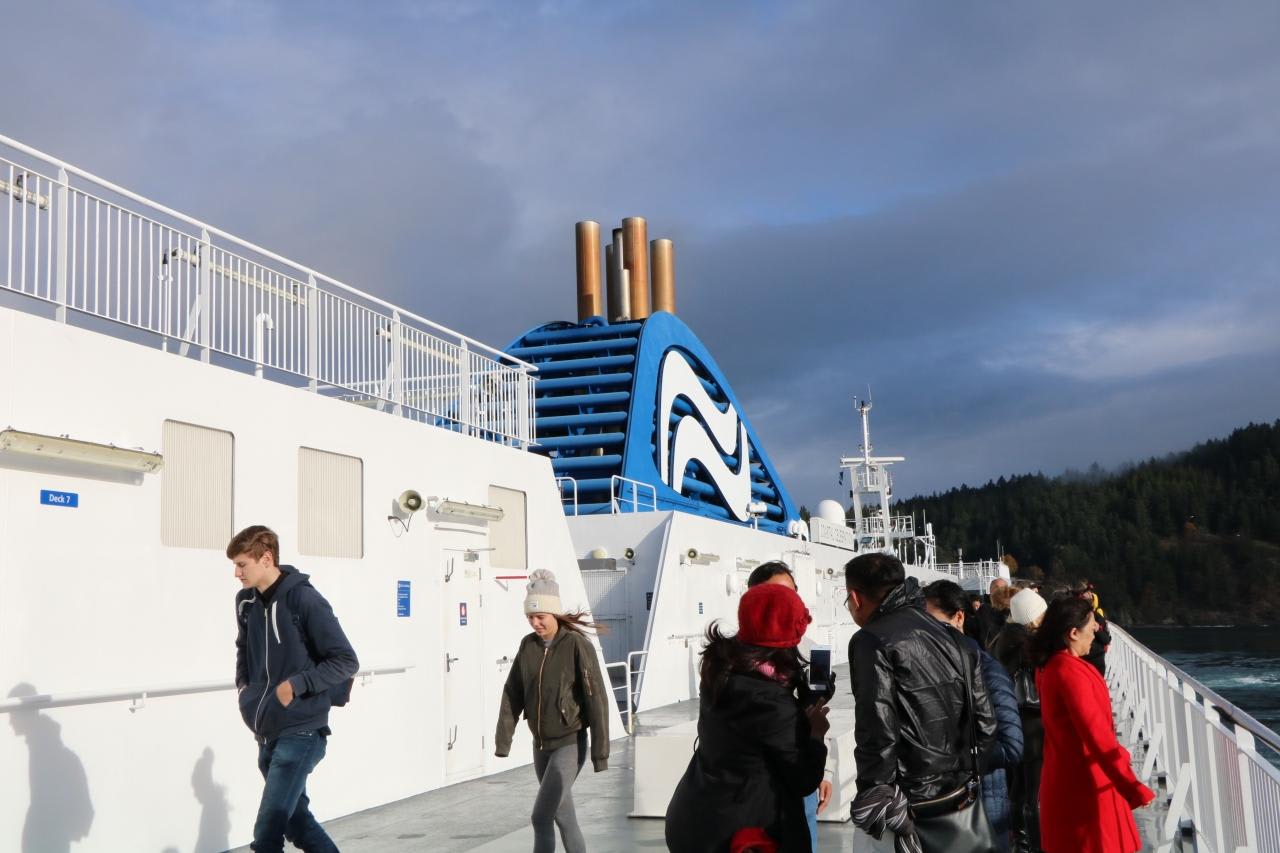 往路はB.C.フェリーのCOASTAL CELEBRATIONに乗船し、早速デッキに行き陸地を眺めました。