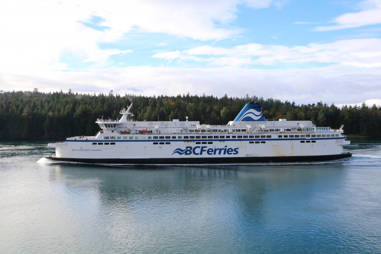 スワーツ・ベイ発トウワッサン行きのSPIRIT OF BRITISH COLUMBIAが右に旋回しながら静かに姿を現しました。