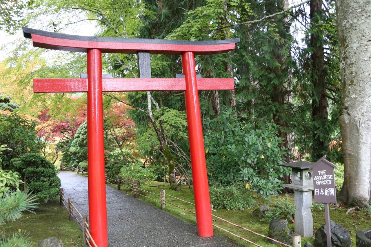 ブッチャート入江を望む場所に造られた日本庭園の赤い鳥居