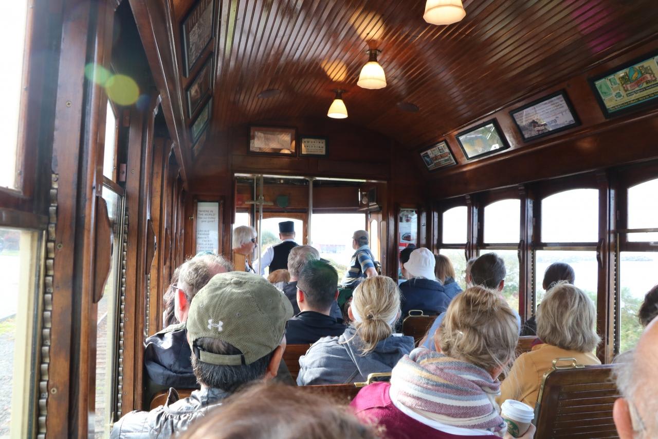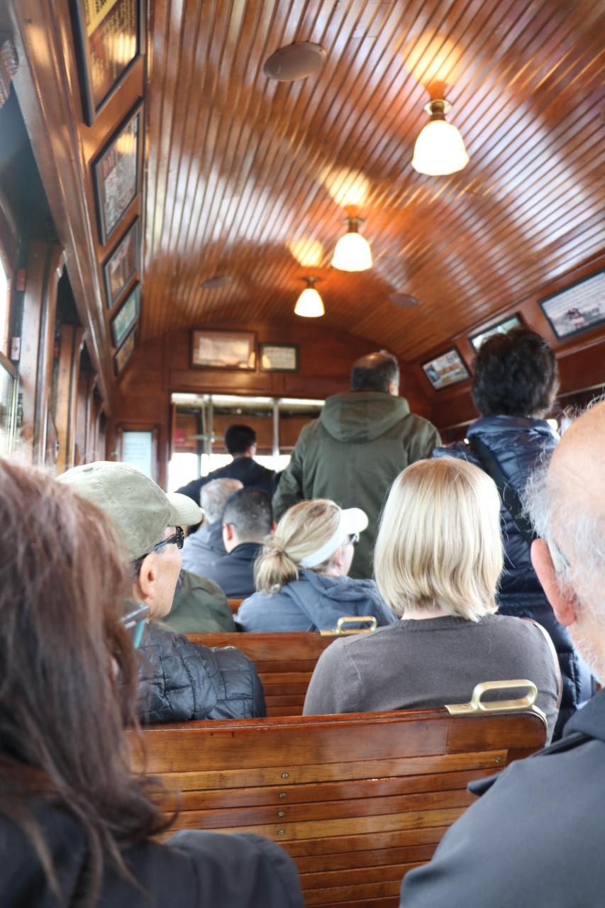 木製の椅子でレトロな感じのアストリア・リバーフロントトロリーの車内