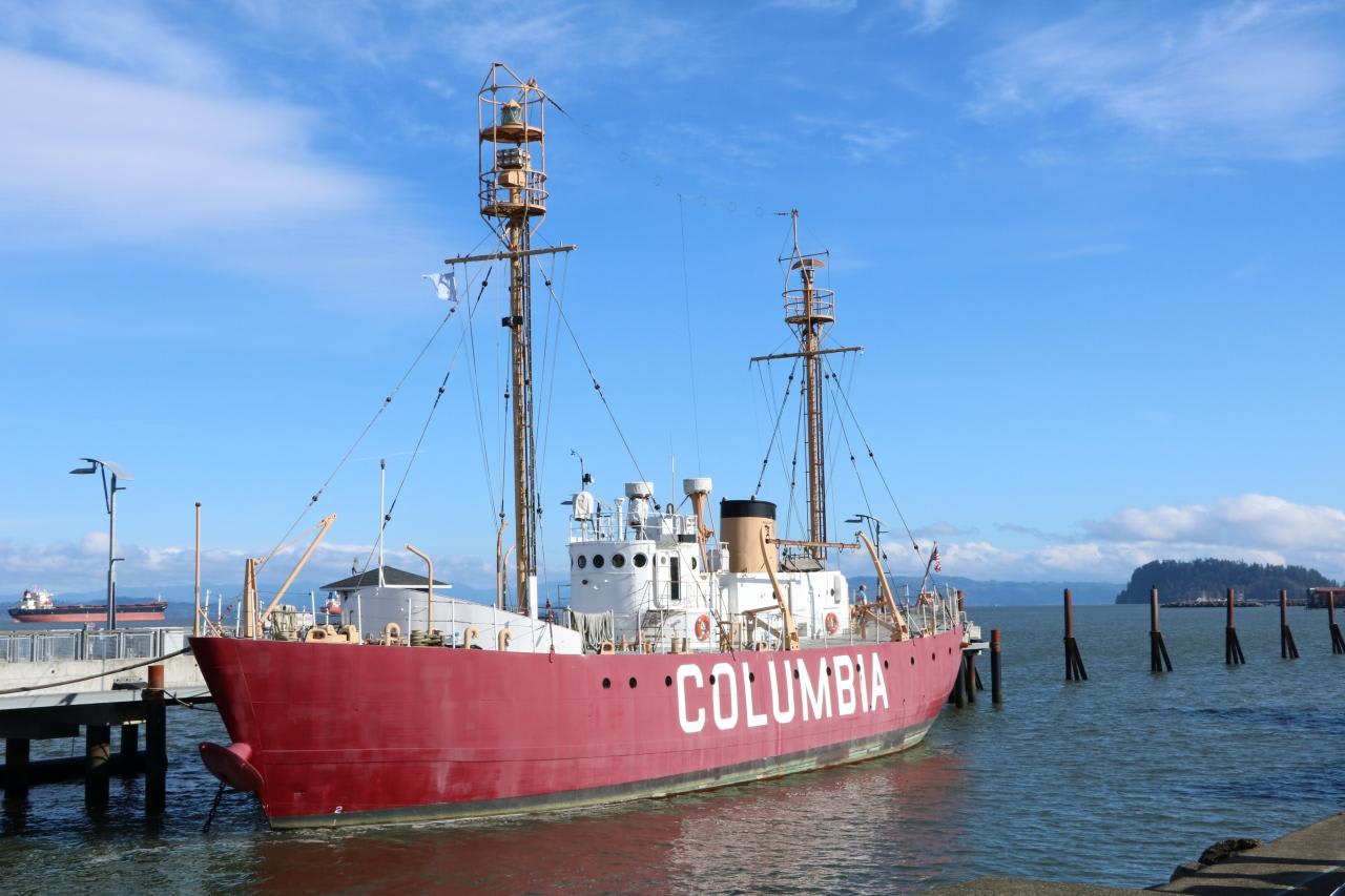 灯台にもなっているコロンビア川海事博物館の前に係留されているコロンビア号