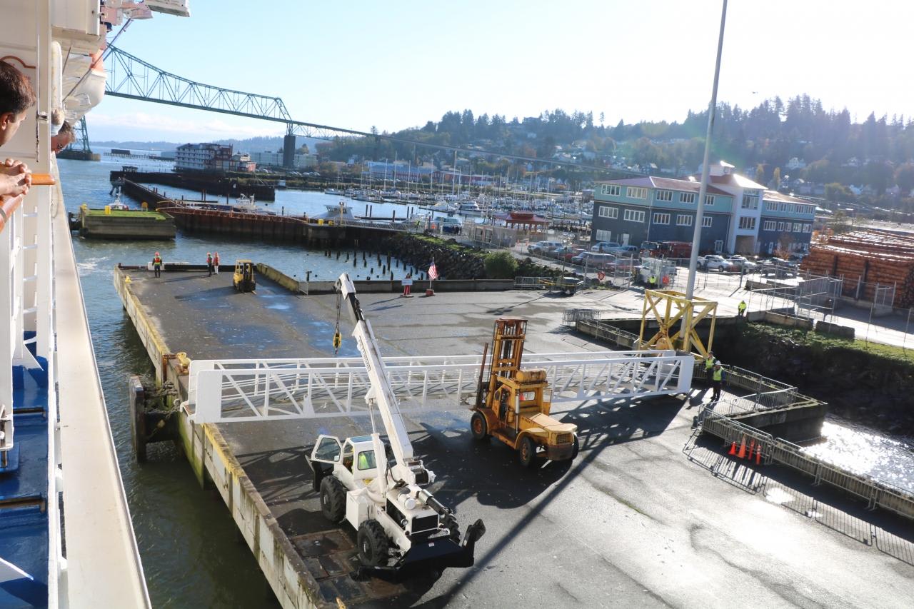 スター・プリンセスの着岸風景。船の7階デッキから見たアストリアの町
