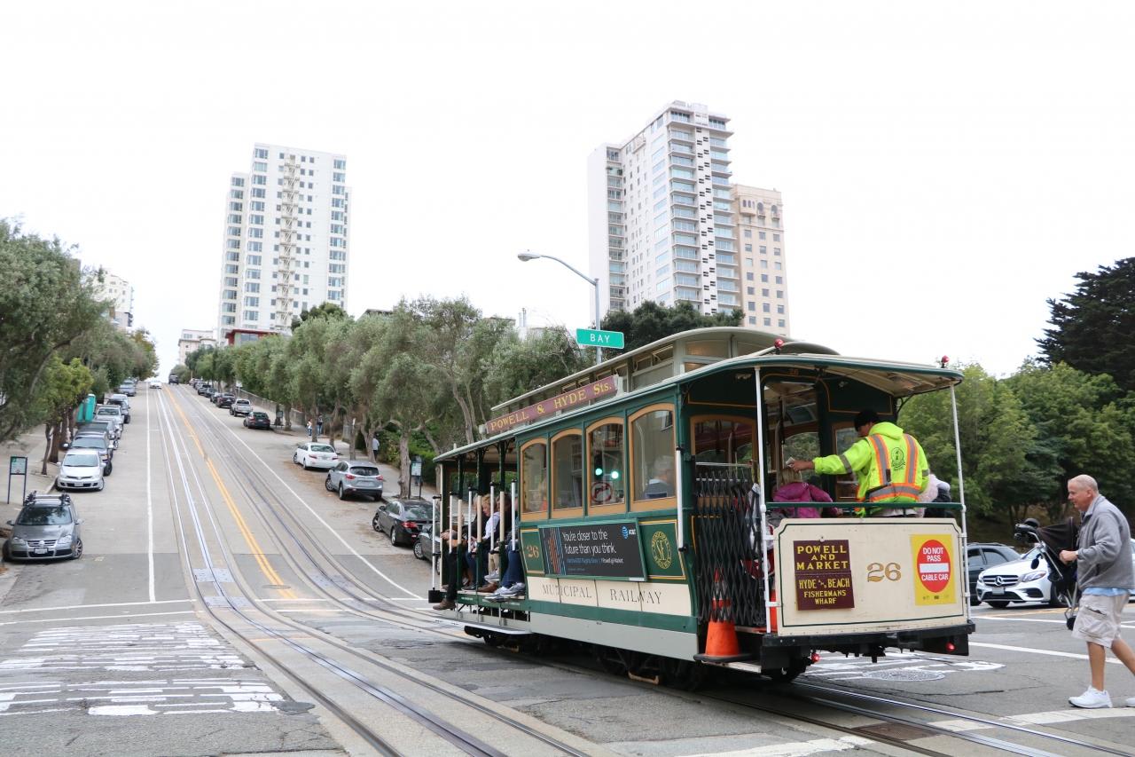 プロフィールを見るアストリアを出港して翌日は終日航海で翌々日早朝にゴールデン・ゲート・ブリッジを潜り抜け、午前7時にサンフランシスコ港35埠頭に着岸しました。サンフランシスコはゴールデンゲートブリッジを筆頭に観光スポットも多く、今回のクルーズ寄港地で最も楽しみにしていた都市です。埠頭は繁華街に近く先ずは歩いてフィッシャーマンズワーフへ。そしてサンフランシスコ観光の名物でもあるケーブルカーに乗車。ケーブルカーは予想以上の急勾配の坂道を走り、立ち乗りもでき乗り応えも見応えもありました。船は午後11時出港なので観光時間も長くとれ、夜景も楽しめました。私達のサンフランシスコは坂に始まり、坂に苦しみました。でもそれが一番の思い出になりました。