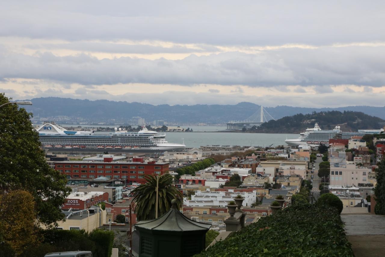 ロシアンヒルからサンフランシスコ湾で憩うスター・プリンセスとルビー・プリンセス