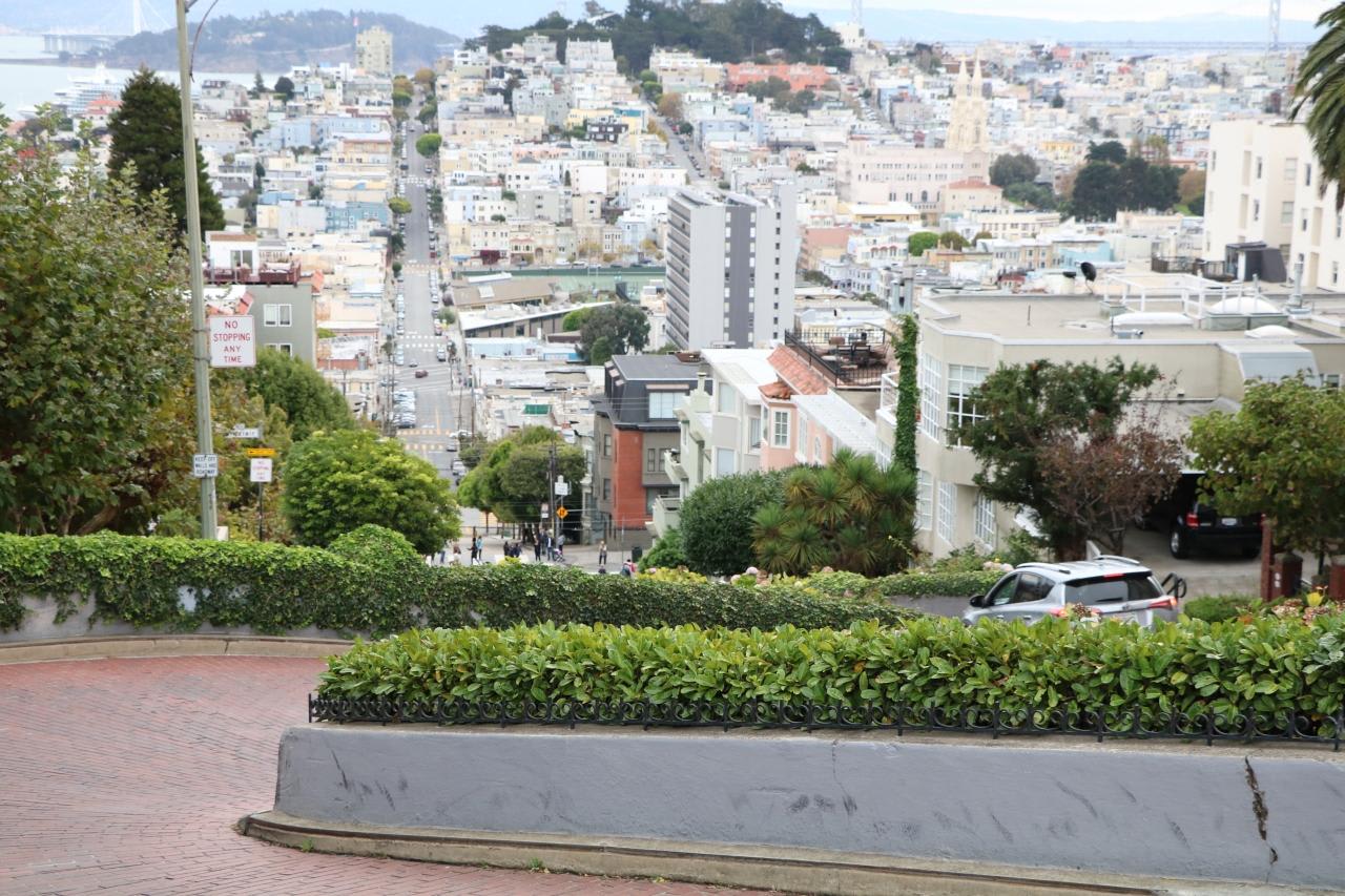 「世界一曲がりくねった道」と言われるロンバードストリート(僅か200メートルの距離に事故防止のために8つの急カーブを設けている)