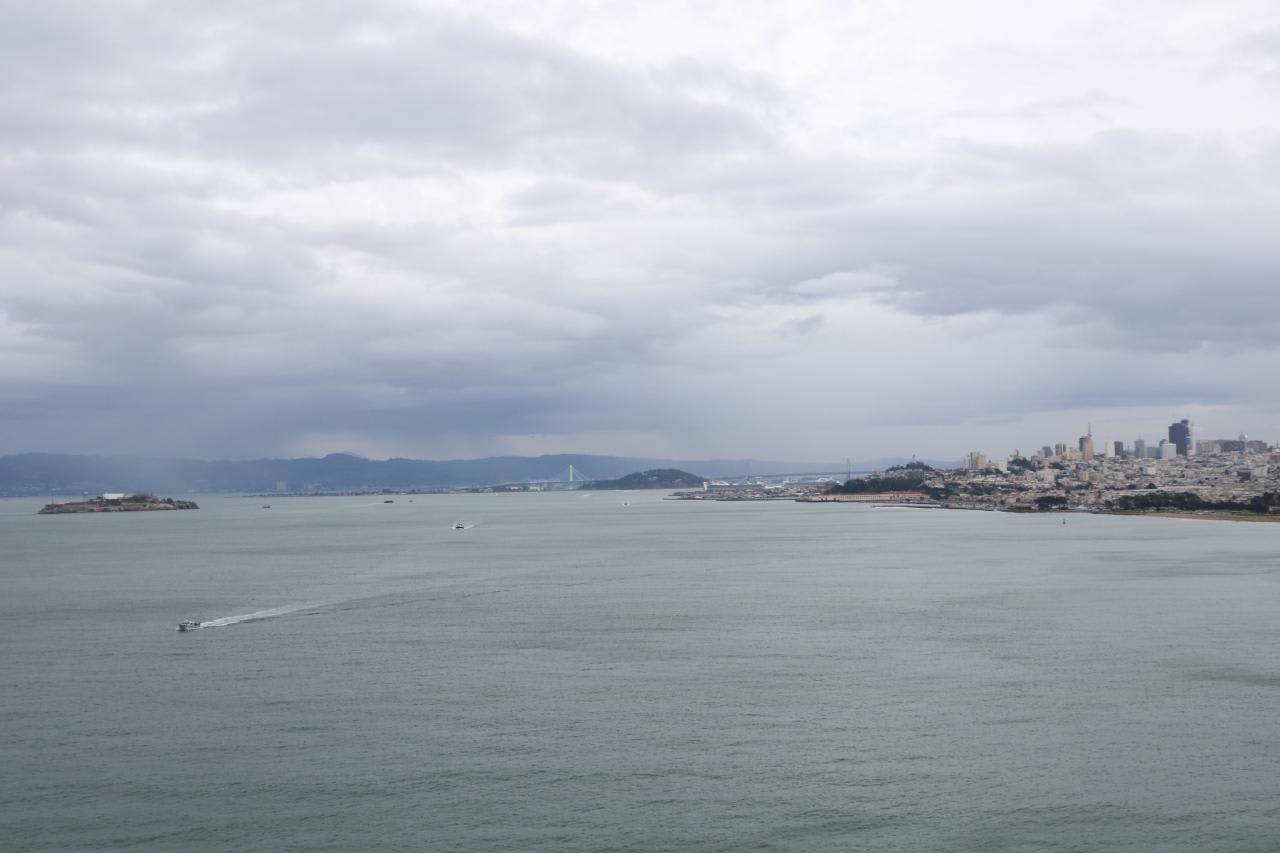 ゴールデンゲートブリッジから眺めるサンフランシスコ湾と市街
