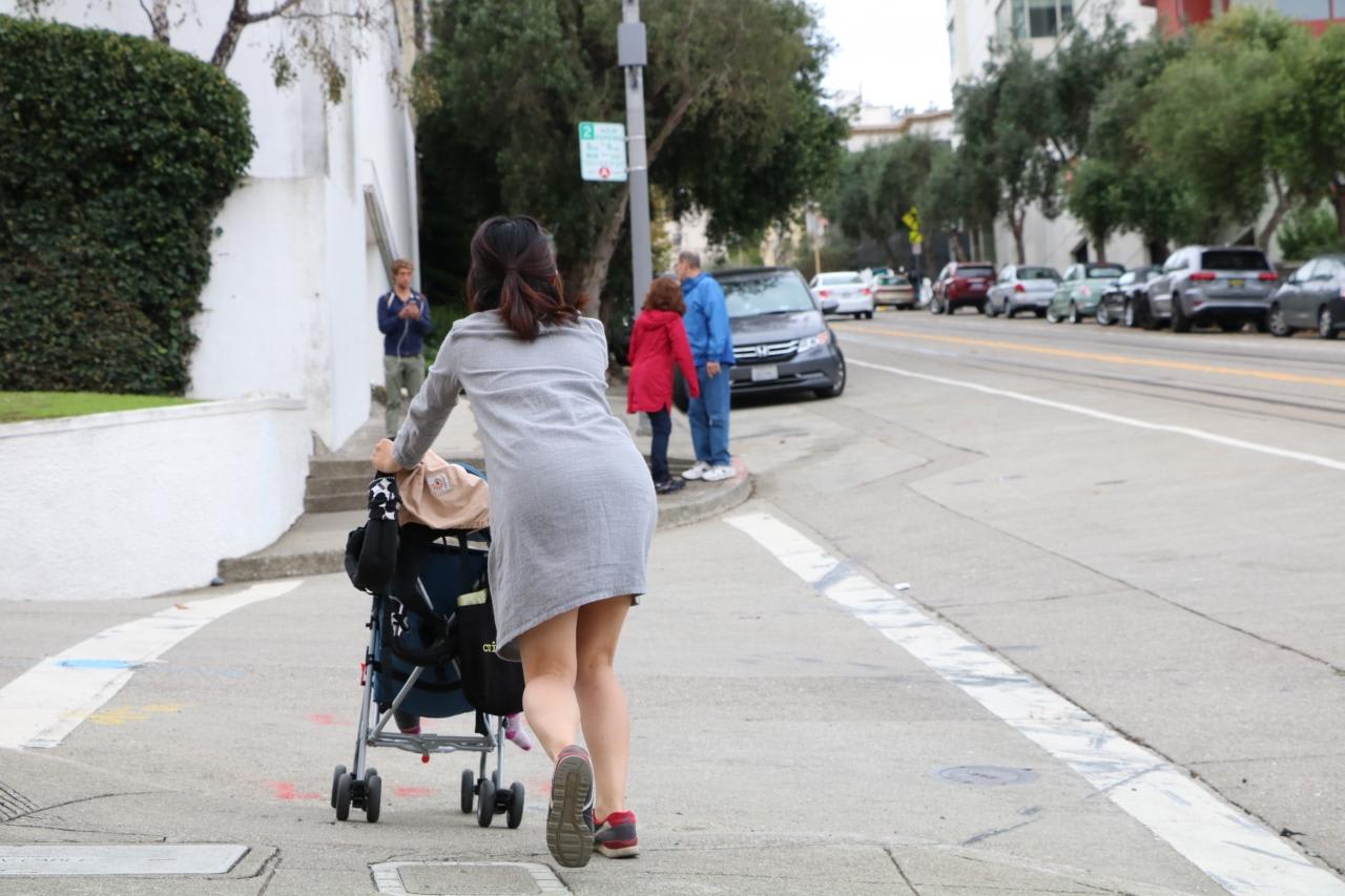 ベビーカーを押して勾配のきつい坂道を上るのは辛い