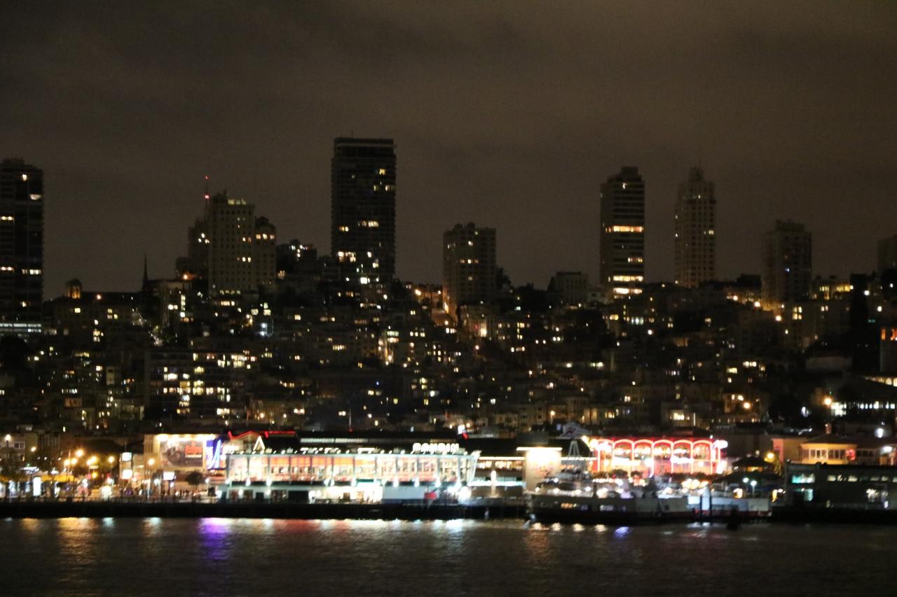 サンフランシスコ港を出港し、離れいくフィッシャーマンズワーフを望む。