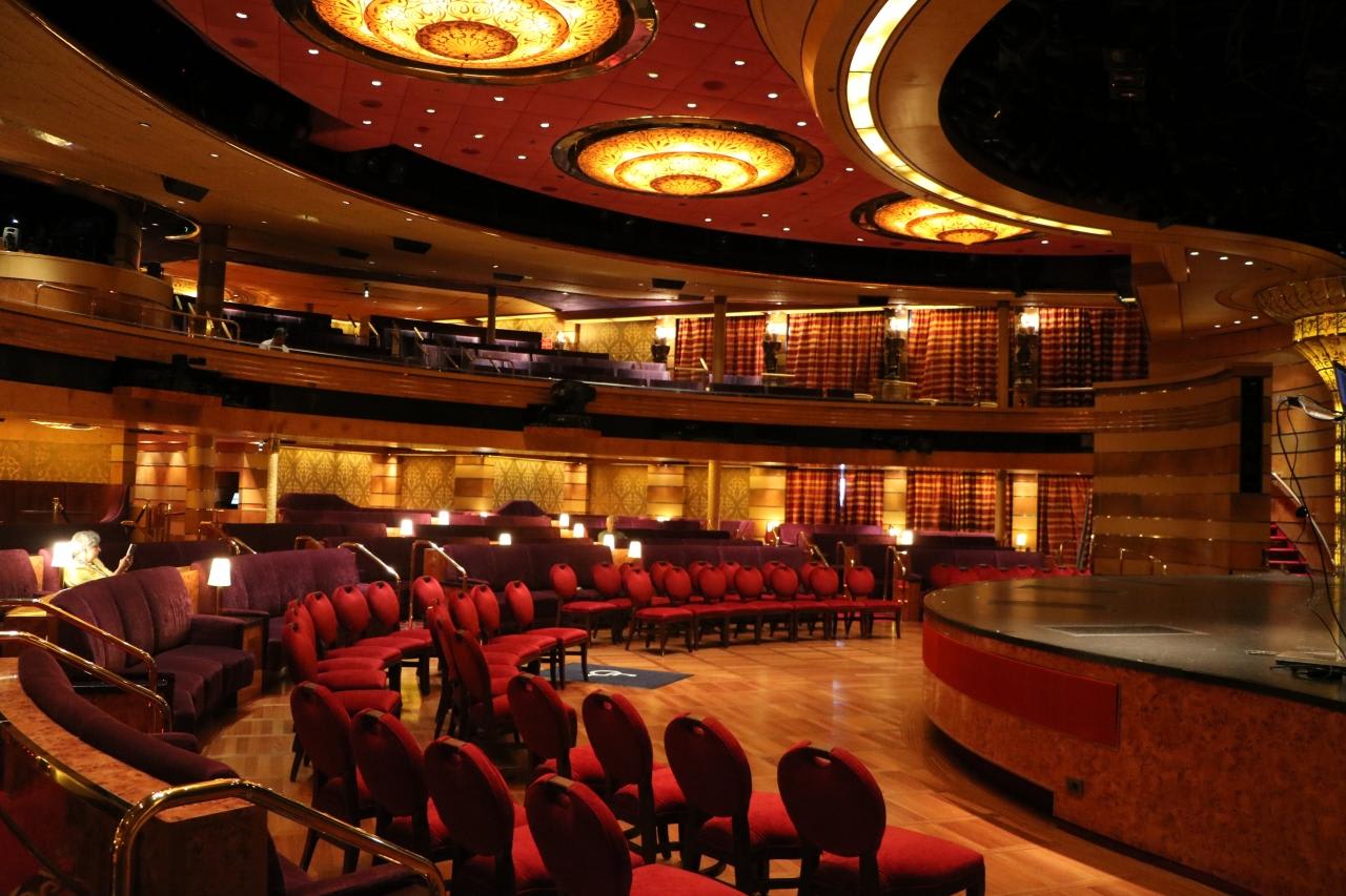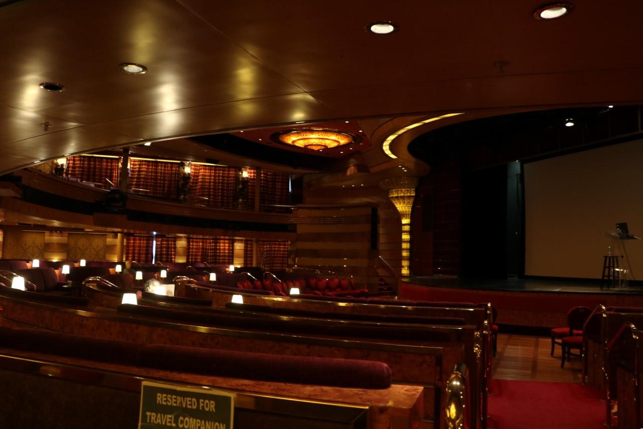2層式の劇場THE SHOWROOM AT SEA詰め込み式ではなくゆったりとした間隔の椅子で鑑賞しやすい