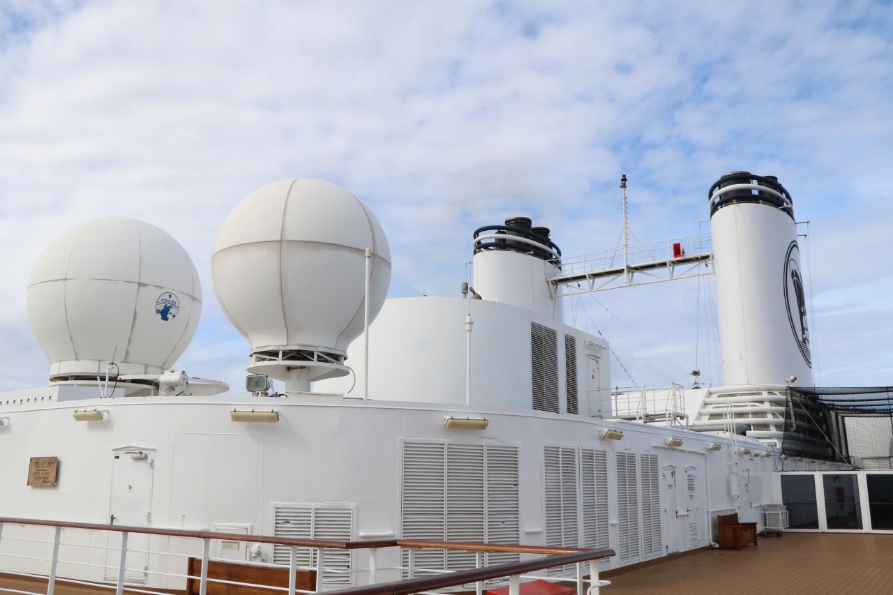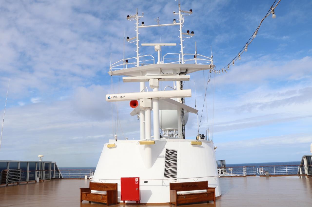 乗船客が上がれる最上階デッキ前方に設置されているレーダー