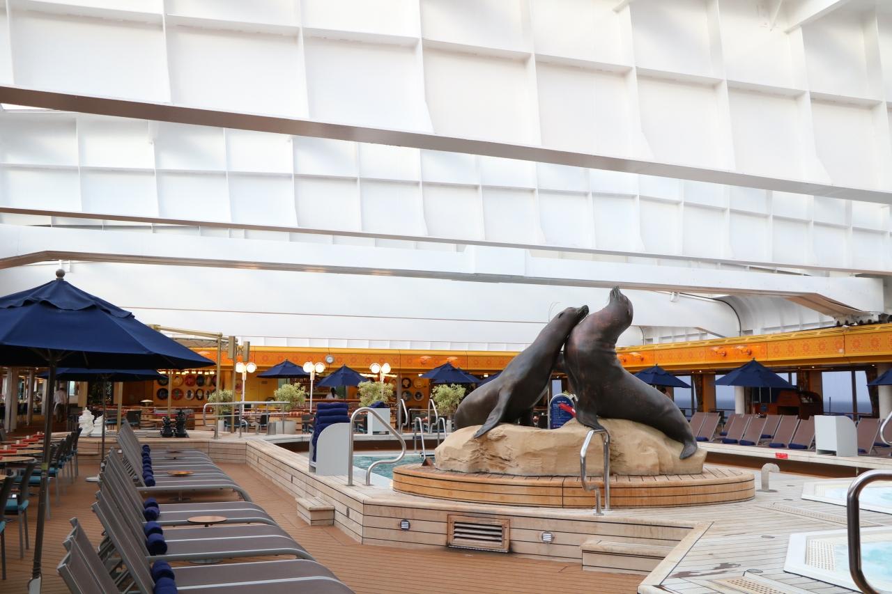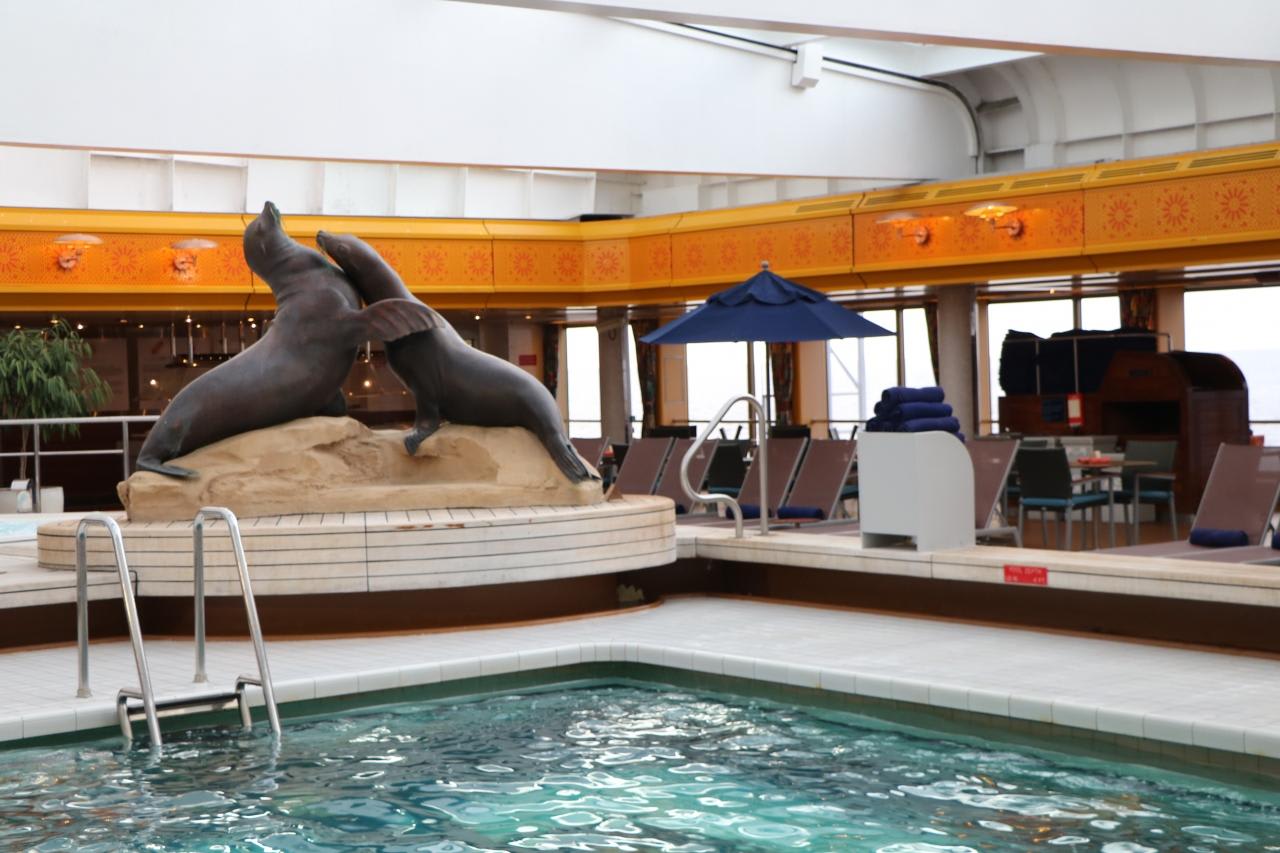 リドデッキ後方に設置されている水深の浅い変形プールデッキチェアに寝転んでいると船の揺れで水面が行き来して、浜辺の波のような音がして心地よい。ゆったりとした優雅な船内。我が家へ戻ったような居心地の良い空間で過ごし、歴史と伝統を継承したHALの洗練された船旅を満喫できました。