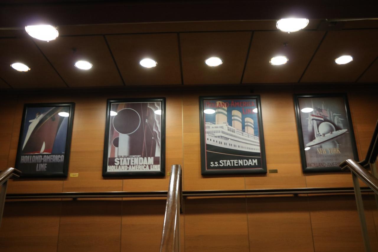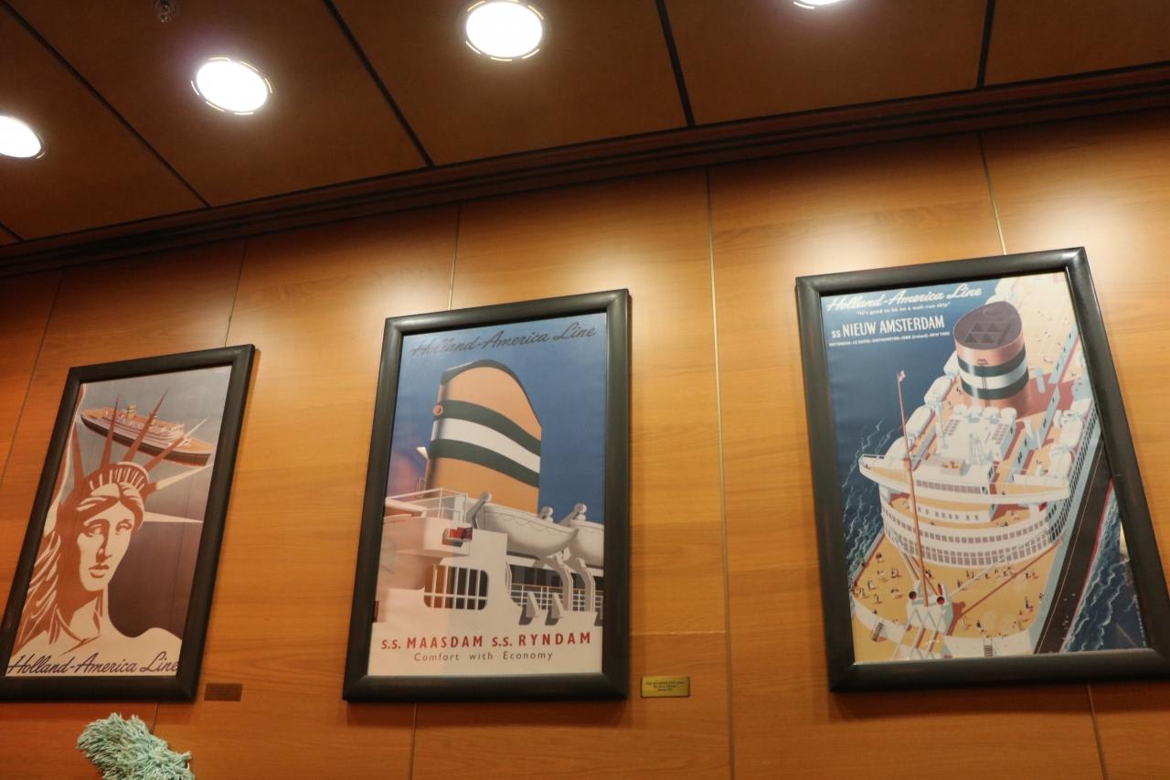 4階アトリウムに飾られているオランダのウイレム・アレキサンダー国王とマクシマ王妃の肖像写真。ホーランドアメリカライン(HAL)はオランダ王室とゆかりも深い事が窺われる。ロッテルダム号はまさに女王の名にふさわしいホーランドアメリカライン自慢のフラッグシップ。