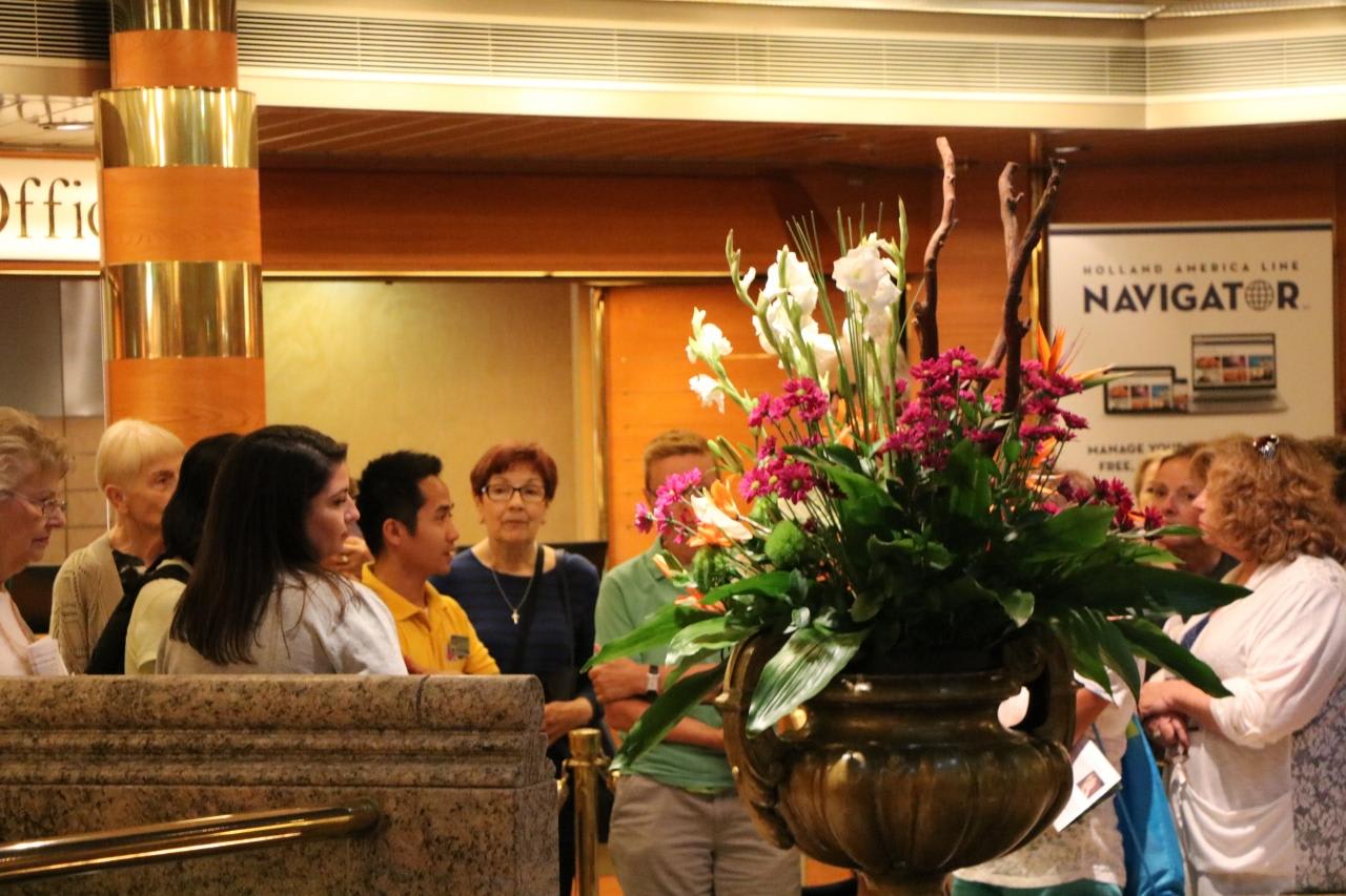 The Art of Flower Arranging船内には豪華な生け花が飾られており、担当者による見学会が催された。