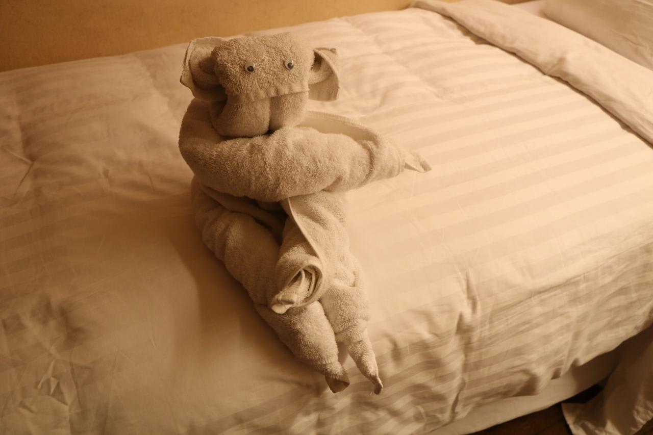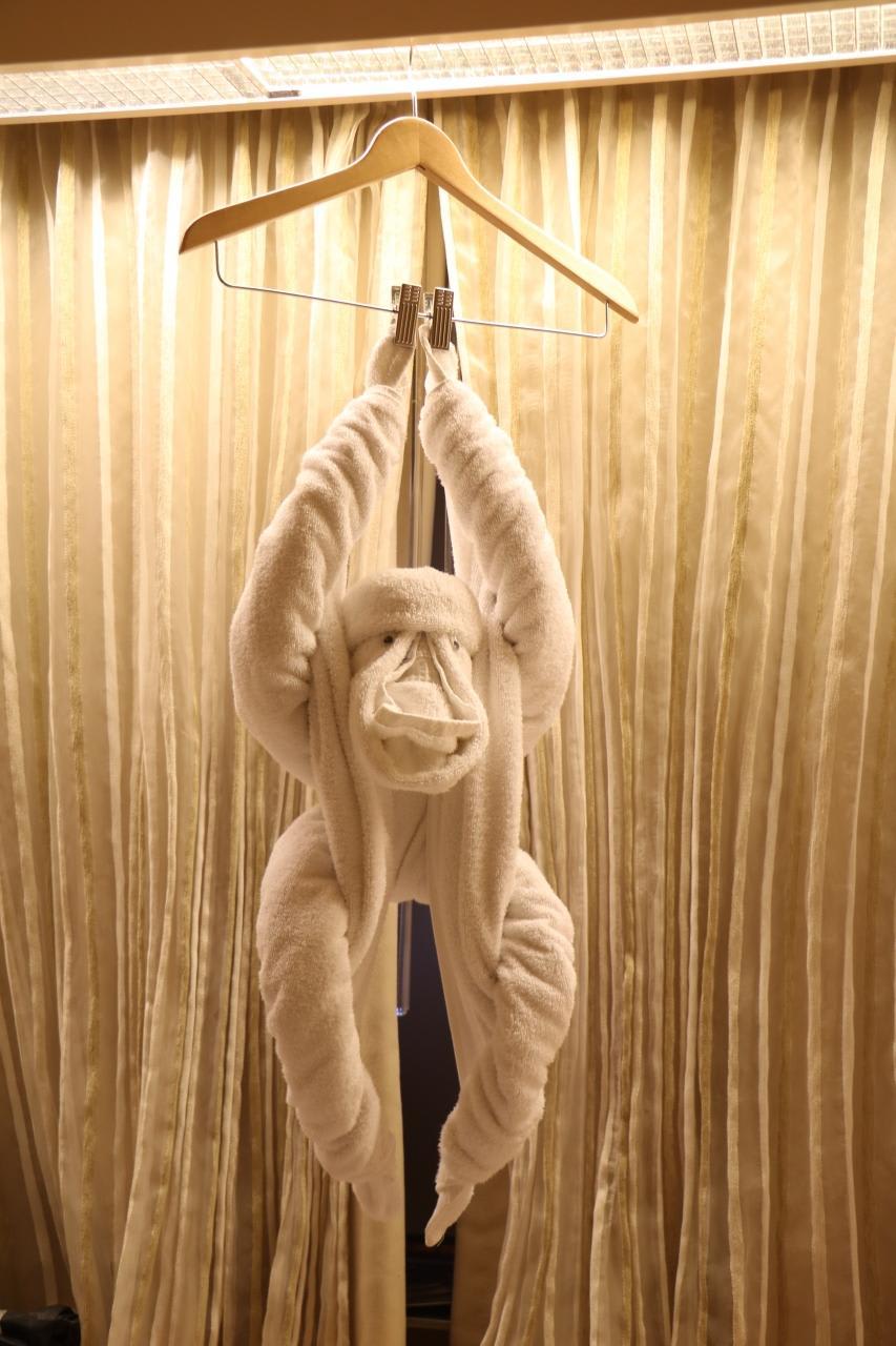 朝夕2回室内清掃とベッドメーキング。夕方には毎日変わる動物のタオルアートが目を楽しませてくれた。