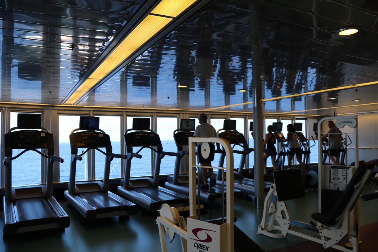 リドデッキ船首部分に配置のフィットネスセンターは大海原を眺めながら運動でき快適