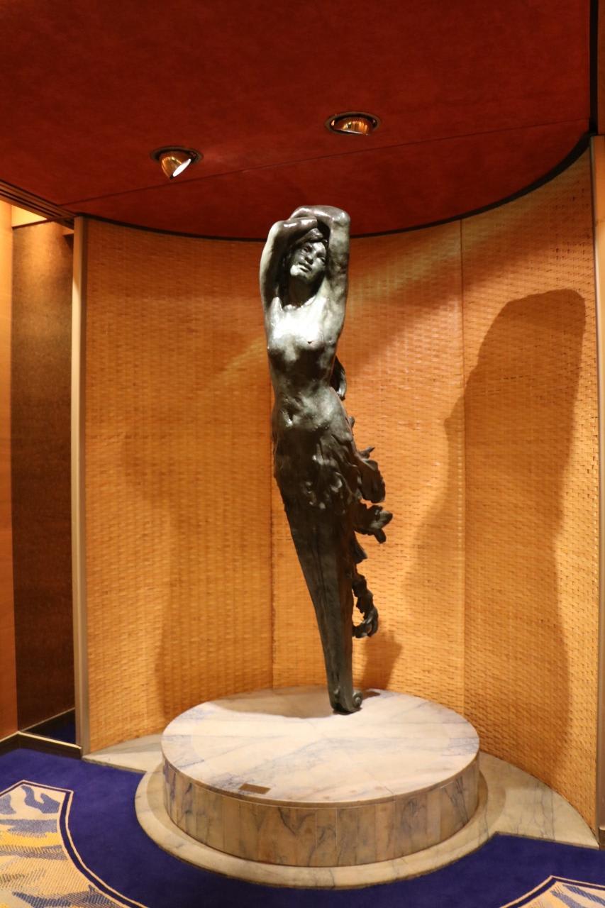 メインデッキ前方のエレーベーターホールに設置のフィンカンティリ造船所のシップヤードにあるフィギュアヘッドのコピー
