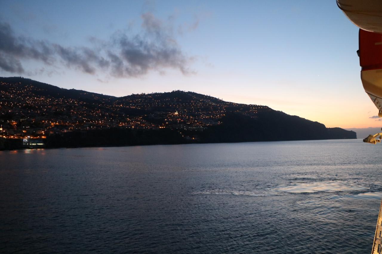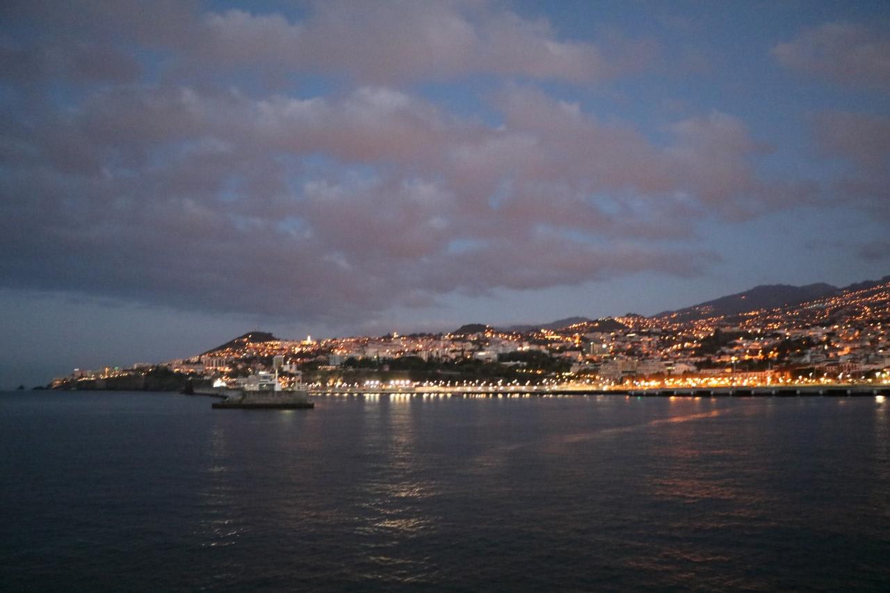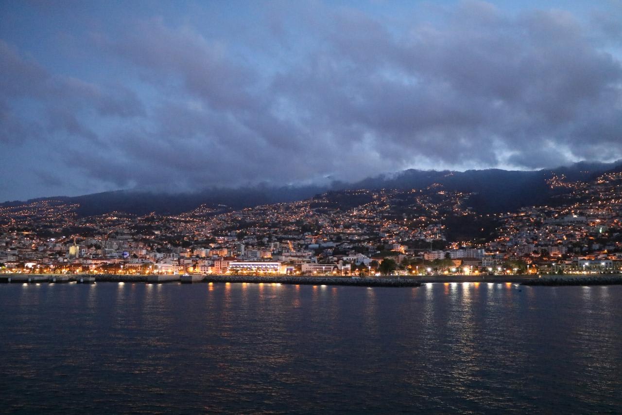 10日ぶりに陸地が見えて、島の明かりが眩いマディラ諸島の西側