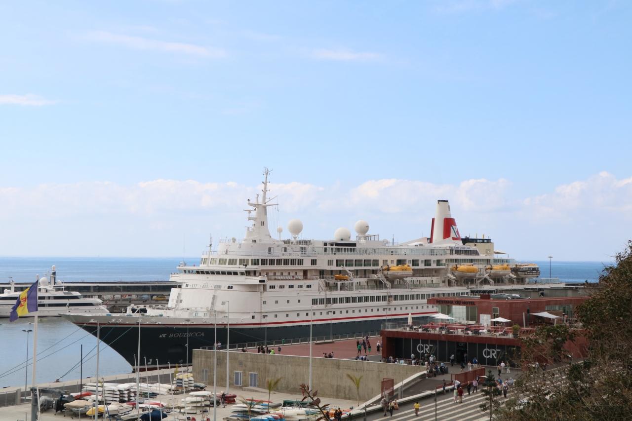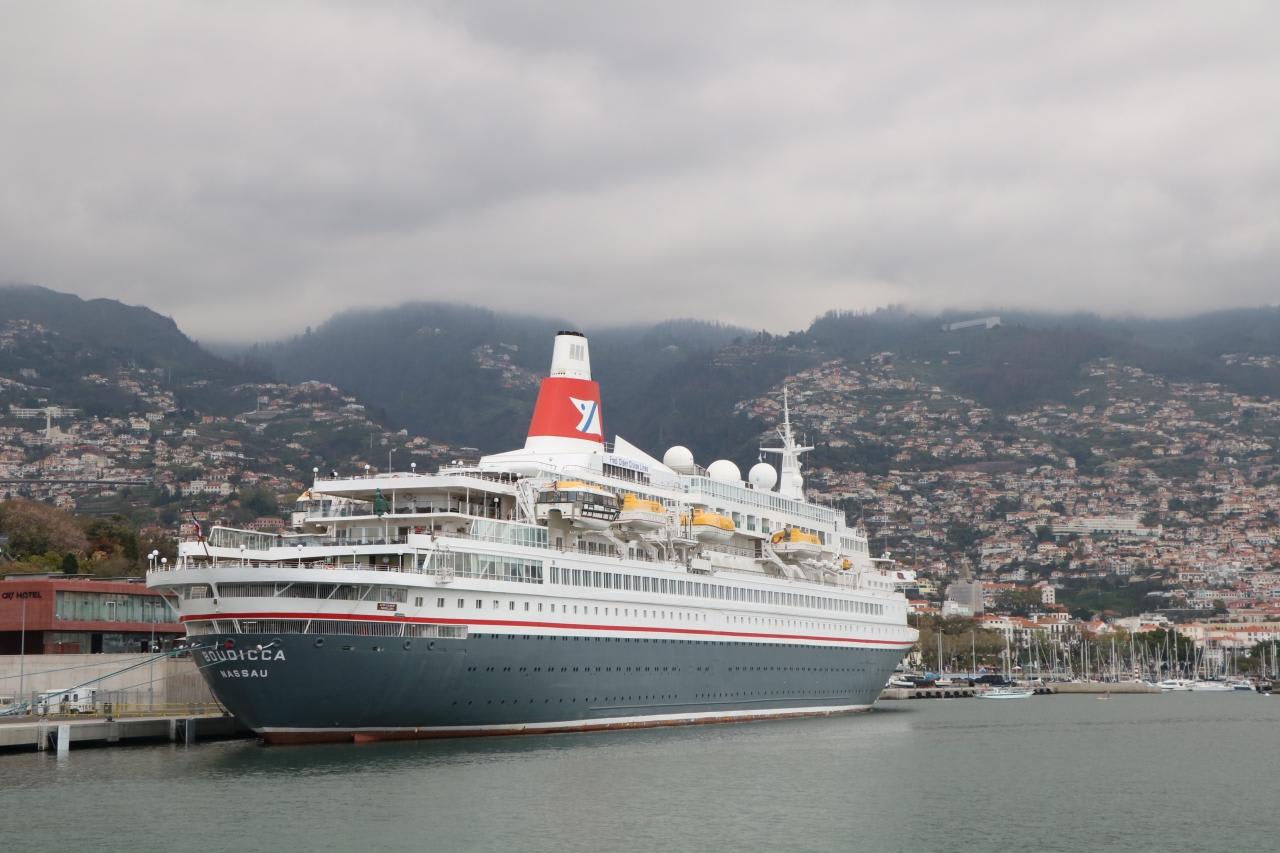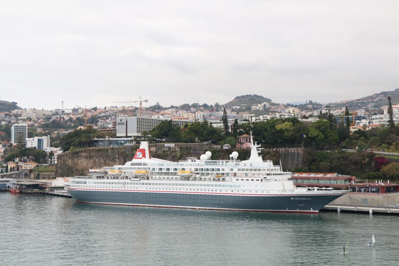先程バックで入港した船の船名はBOUDICCA。帰国後に調べたら元ロイヤルバイキングスカイであることが判明。40年位前に当時は最新鋭の豪華客船として世界一周途上で神戸に来港した時以来。40年ぶりに異国の地で憧れの女性に再会したような感じでした。