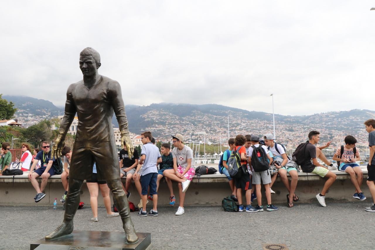 超有名な現役サッカー選手クリスチアノ ロナルドの銅像。フンシャルが生まれ故郷らしい。