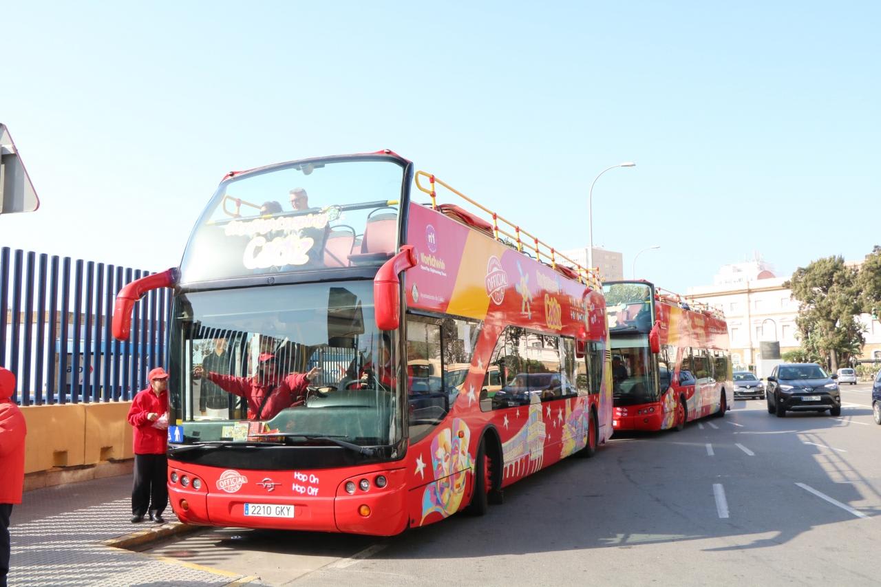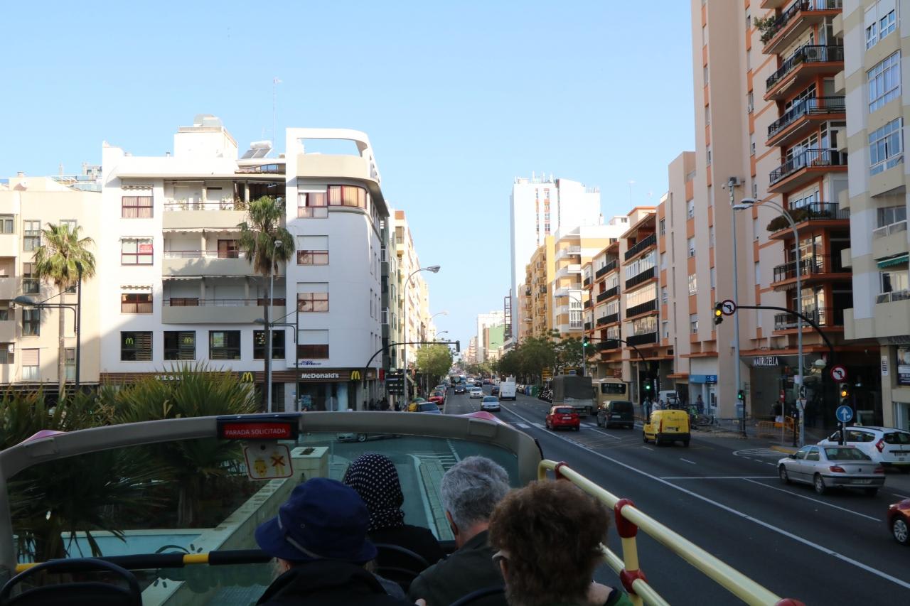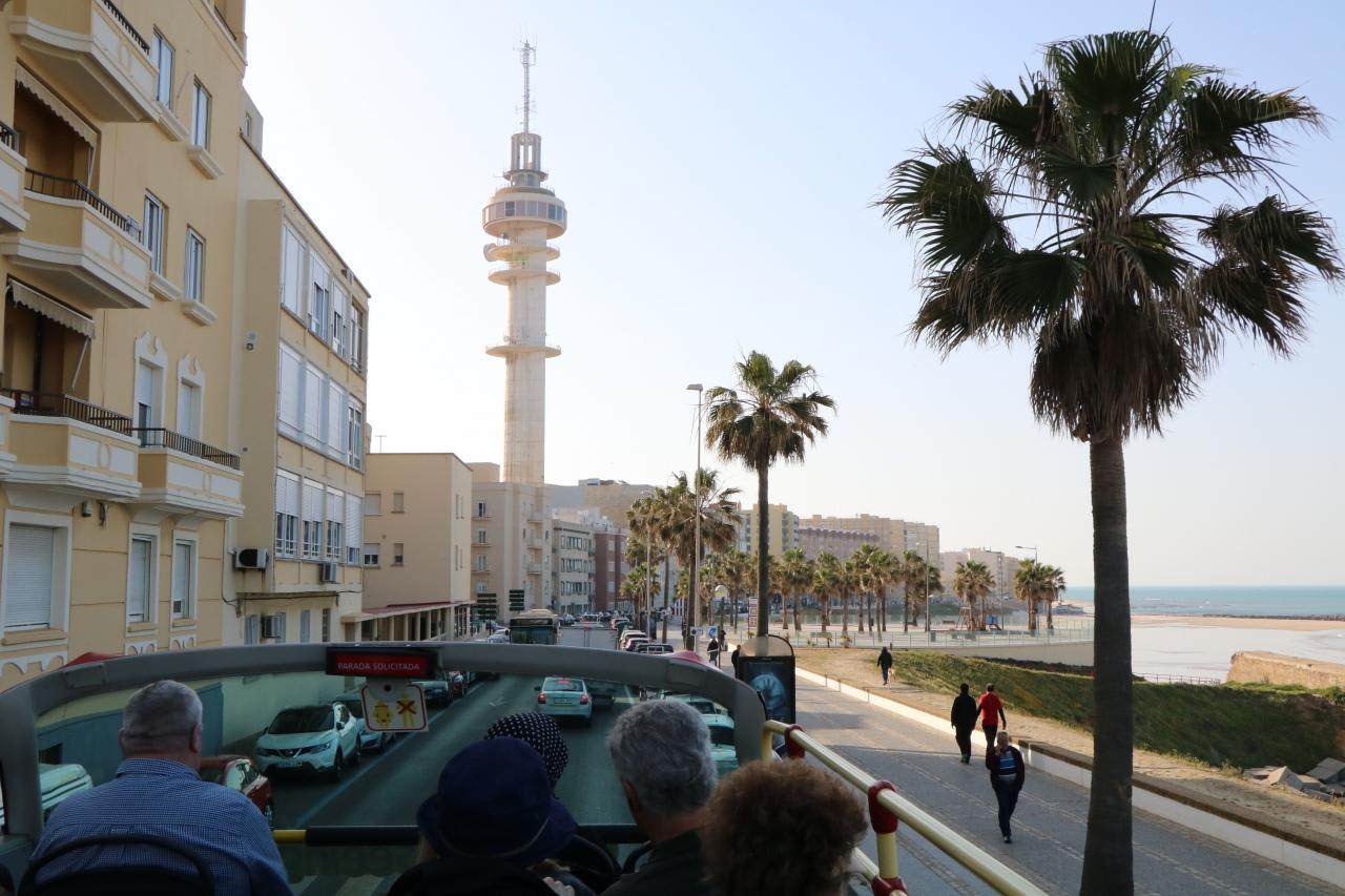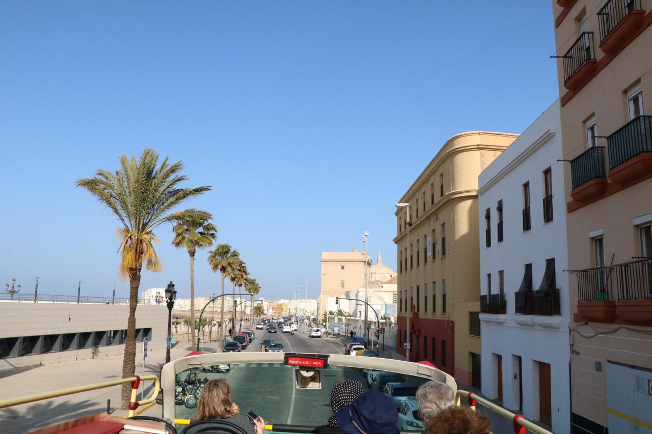 カディスにも赤い2階建遊覧バス。埠頭に乗降場があり、散策した後に利用しました。(18ユーロ)