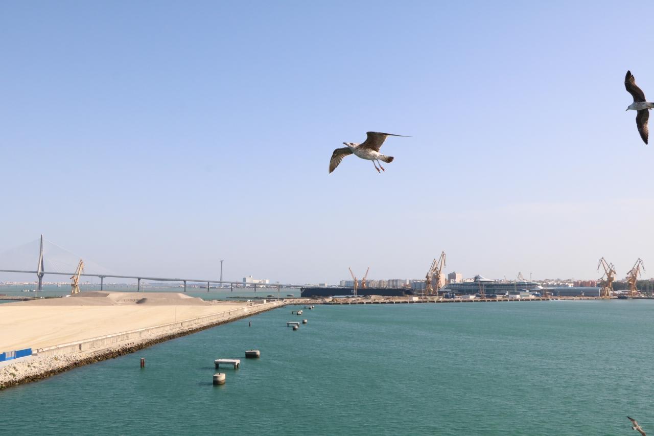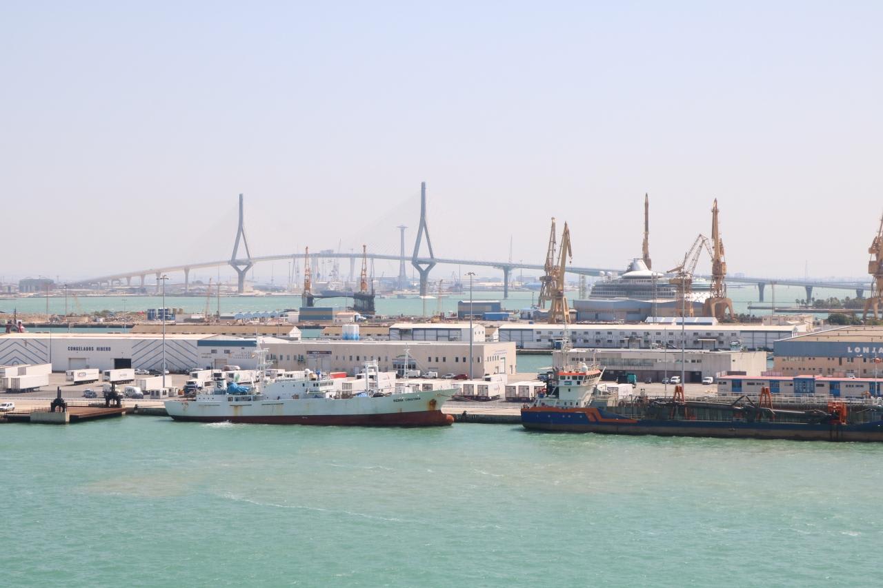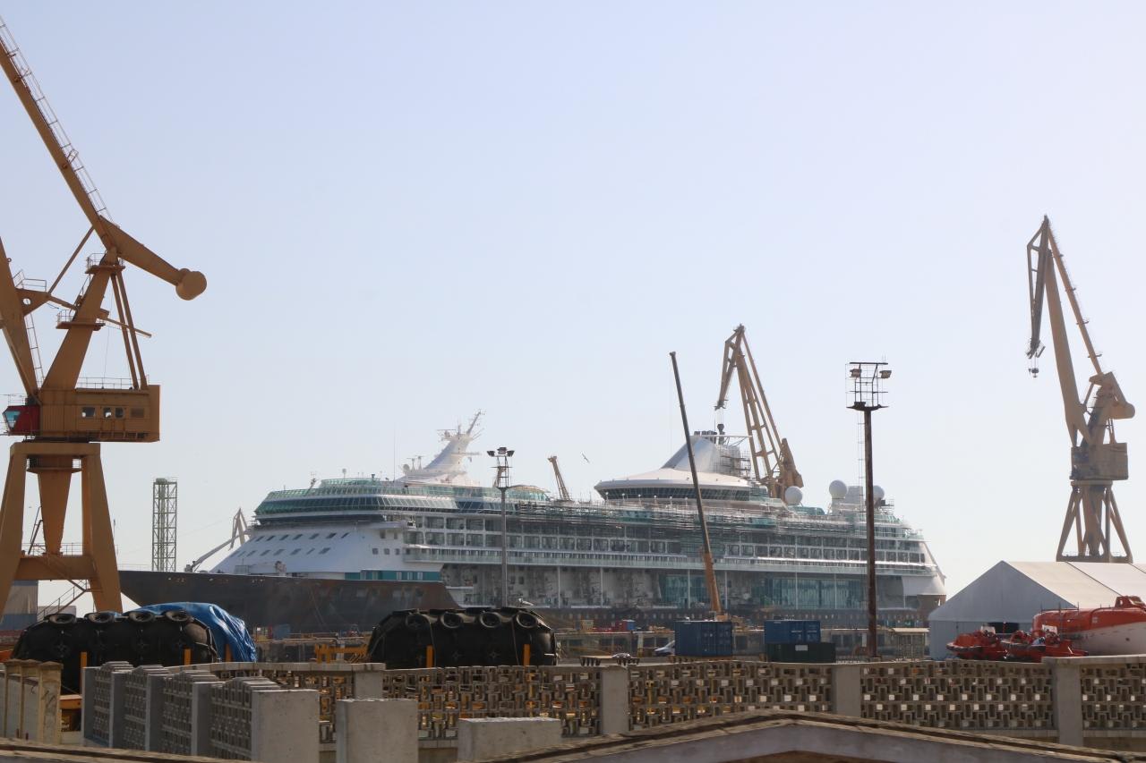 現在のカディスは造船業が盛んな港湾都市で、発注元はロイヤルカリビアンインターナショナル(RCI)と思われる客船が建造中でした。