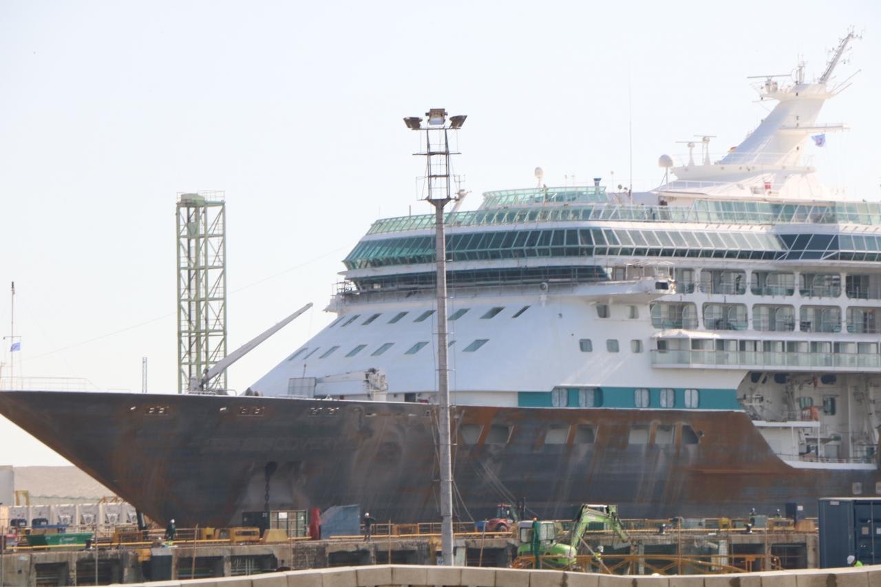 帰国後、船に詳しい友人からの情報でこの船は建造中ではなく改装中のLegend of the Seasである事が分かりました。トムソン クルーズに売却され、新しい船名はTUI Discovery2