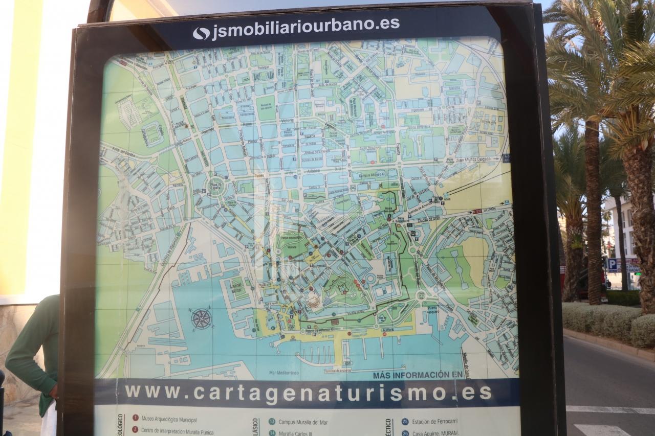4番目の寄港地カルタヘナの観光地図港の目の前に街があり徒歩で観光できるので、クルーズにはピッタリの観光地。