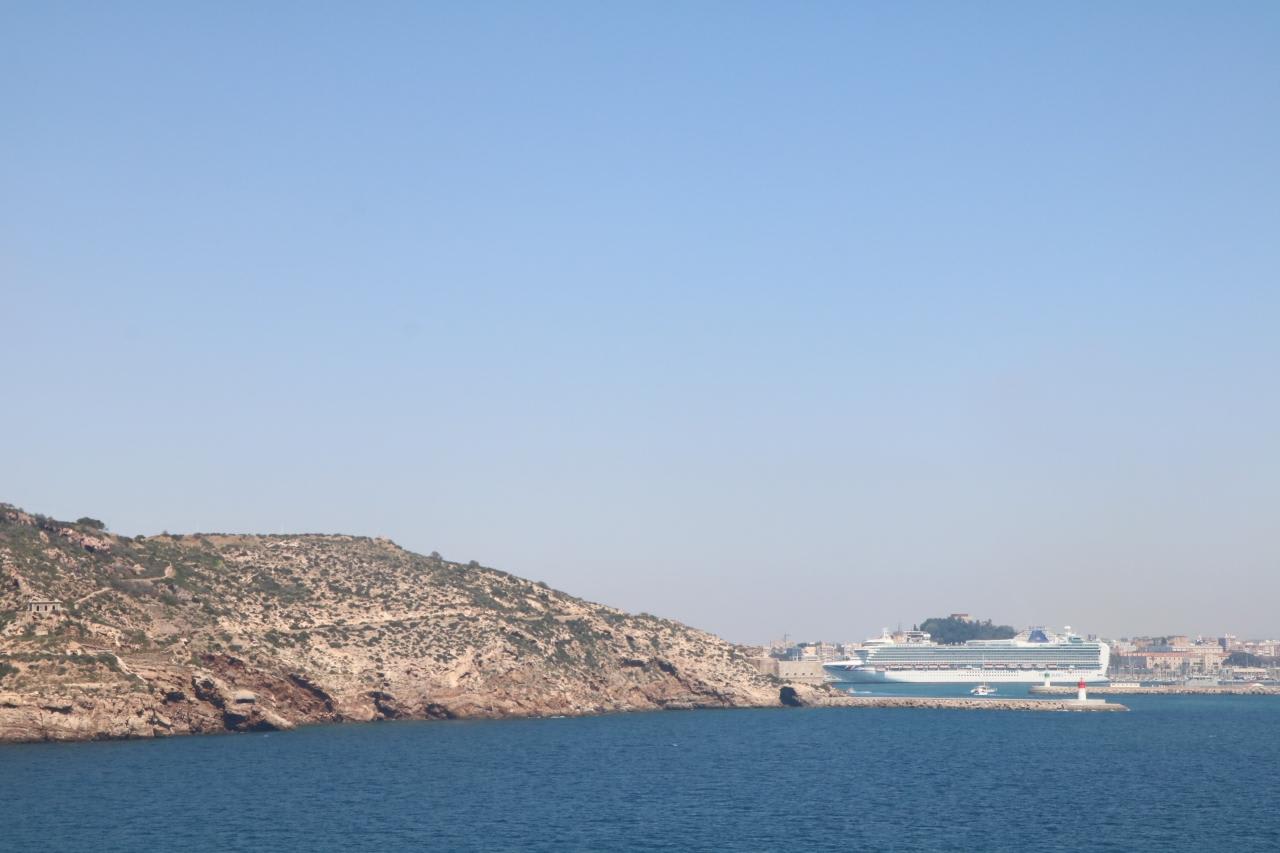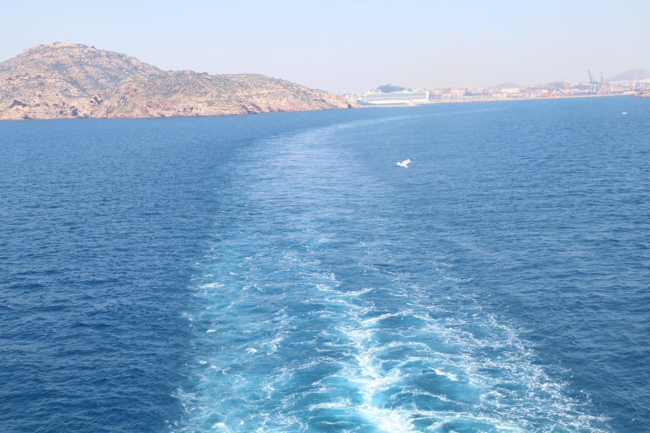 美しいカルタヘナの景観から船はドンドン遠ざかっていき、一路バルセロナへ(航海距離530km)
