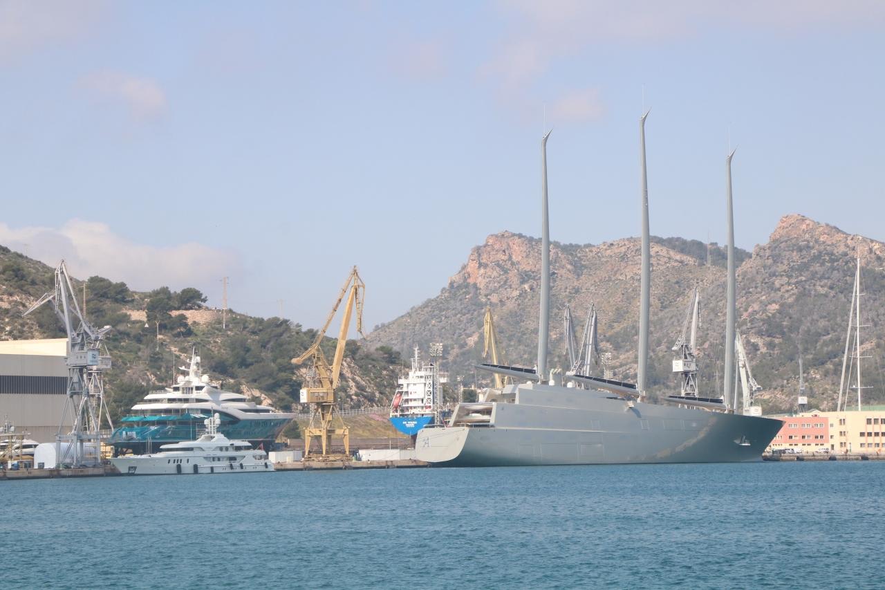 <船名:SY(sailing yacht) A>全長143m、全高90m