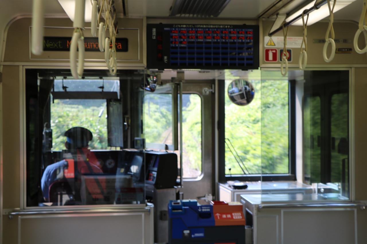 乗務員は運転手だけのワンマン車両。電車なのに気動車に乗っているような感じ。車内を見渡した所、大きなスーツケースを持った物好きな乗客は自分以外は誰も乗っていませんでした。鉄道で舞鶴に来る乗船客の殆どは京都から距離も短く直通の特急運行がある舞鶴線を利用しているようです。クルーズ中は駐車場代が無料なので、舞鶴から乗船の殆どの乗船客は自家用車で来ているようです。