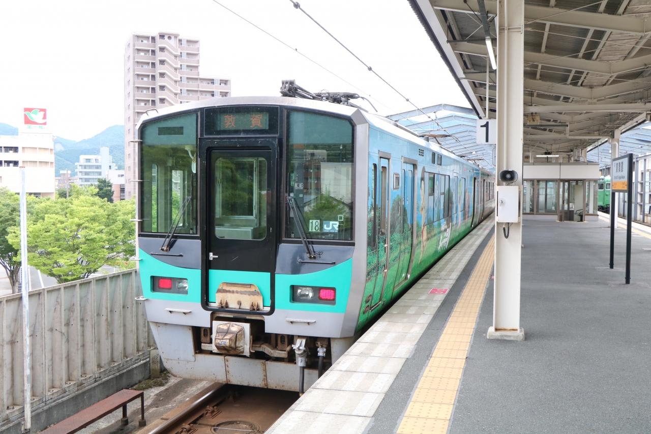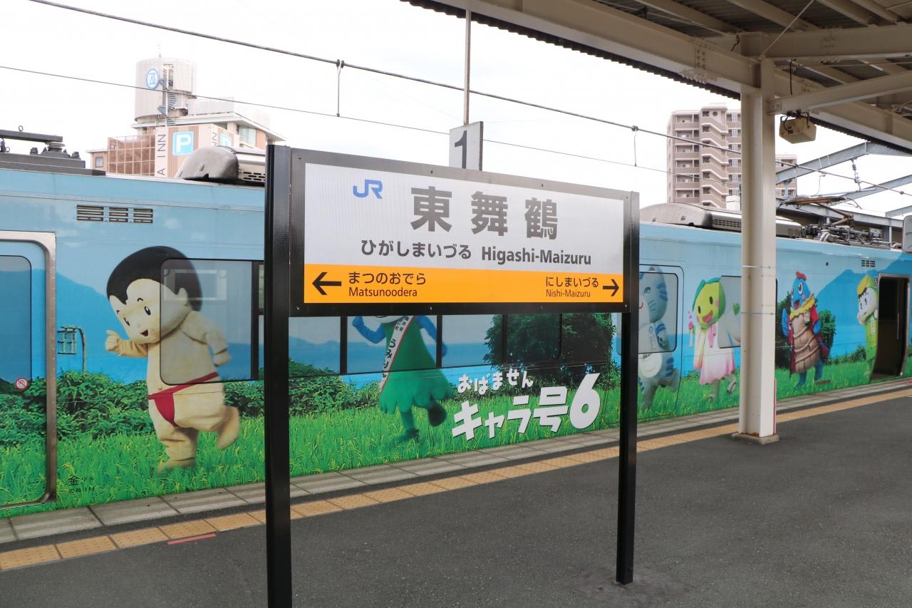 <復路行程>西舞鶴15:25発⇒東舞鶴15:32着・15:34発⇒敦賀17:27着・18:10発(しらさぎ14号)⇒名古屋19:46着幸運にも1編成だけ運行されているラッピング列車が入線。この電車に乗って敦賀駅まで84kmを各駅停車で2時間近く乗車しました。