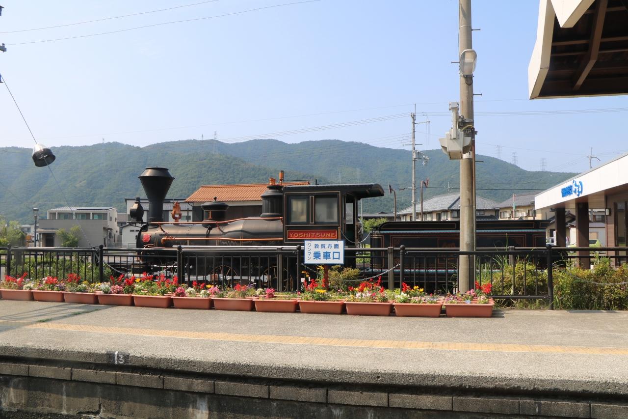 若狭本郷駅前に「義経号」が突然現われビックリ。どうして「義経号」が置かれているのかを駅員に聞いてみたら駅前の店のオーナーが鉄道好きで、大阪花博覧会で展示されていたものを買い取って置いたとか。本物ではなくレプリカらしい。