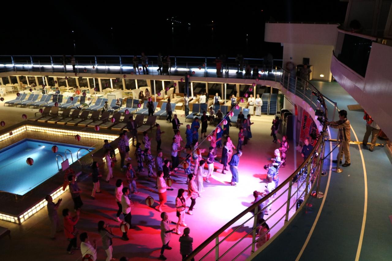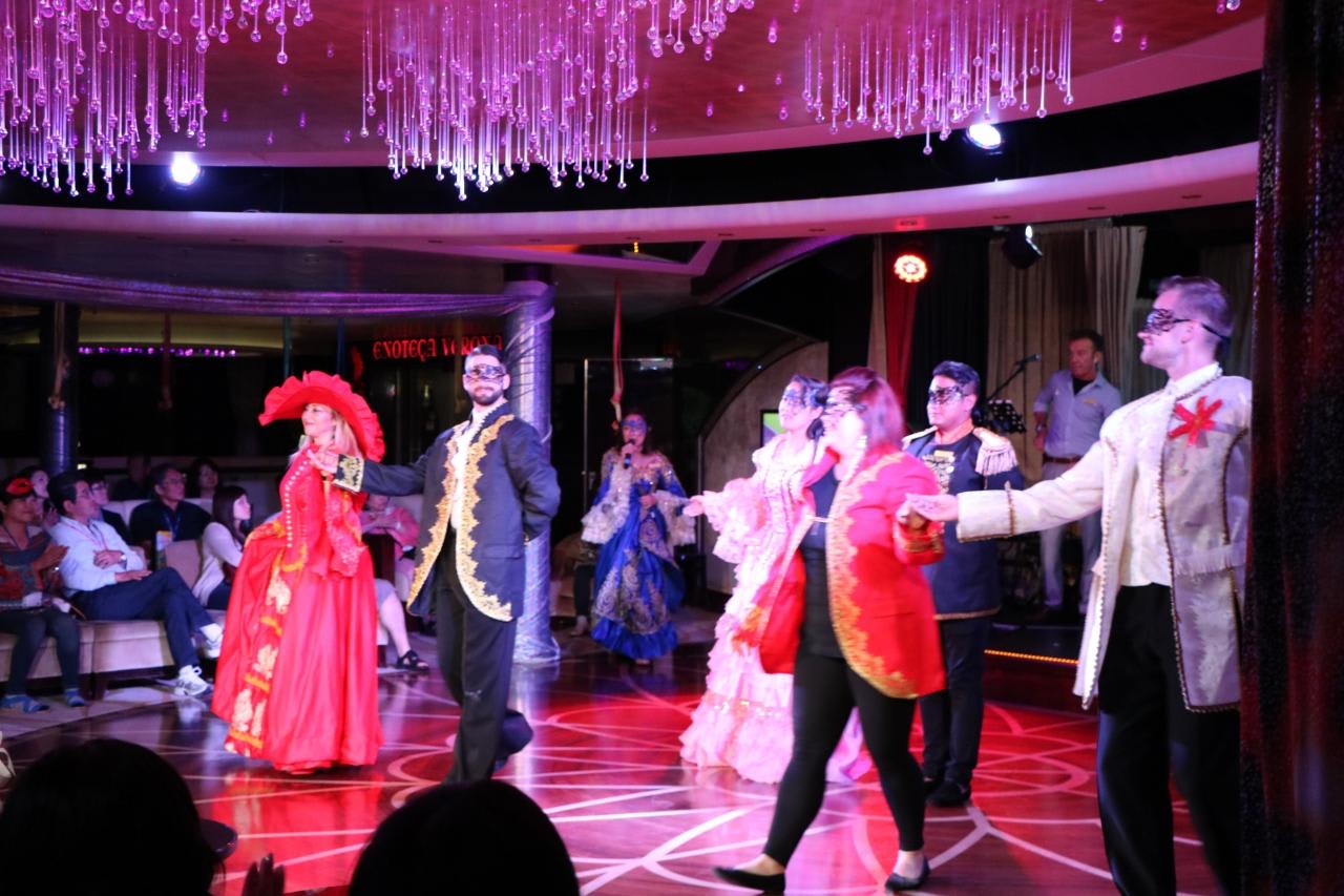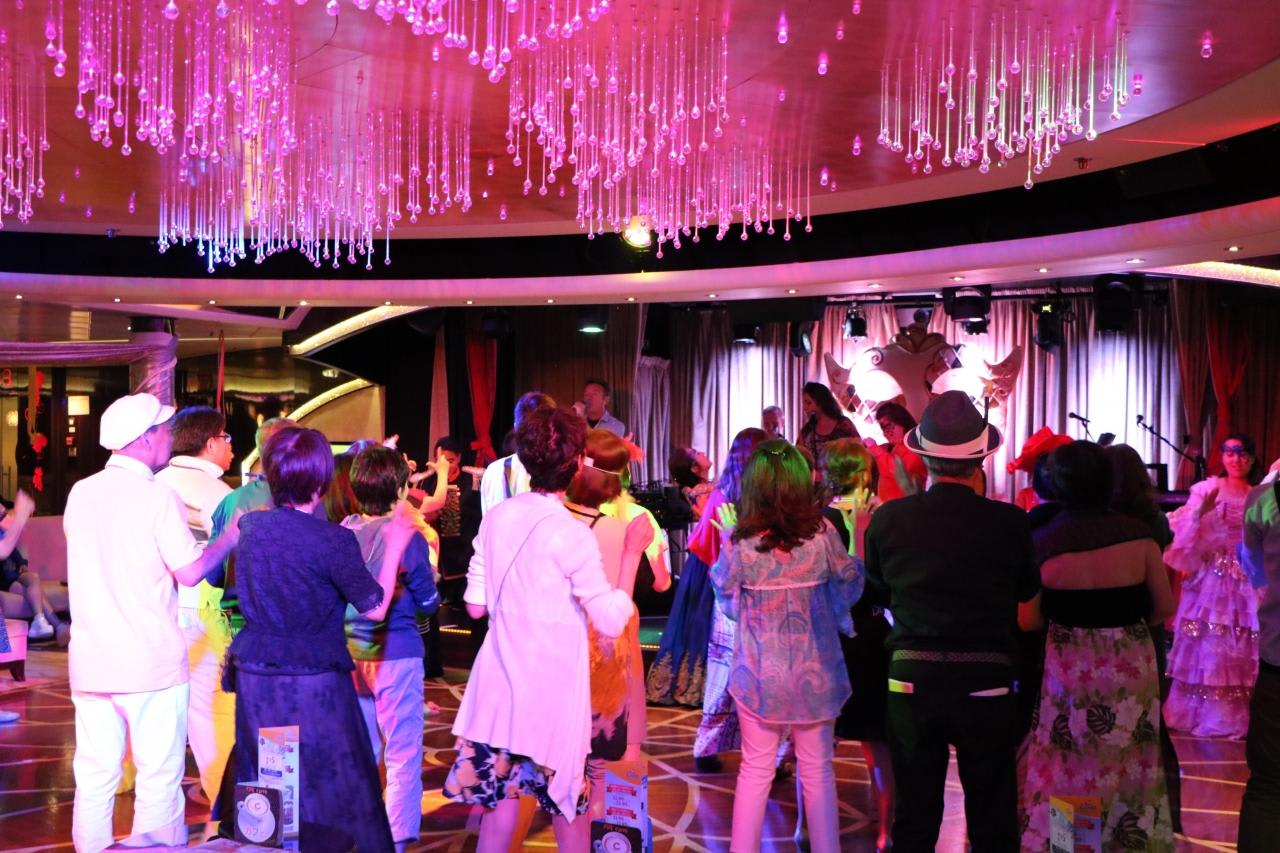 乗船客も踊りの輪の中に!乗船客をいつの間にか担ぎ出す演出がコスタは実に上手い