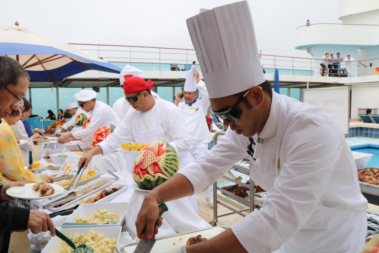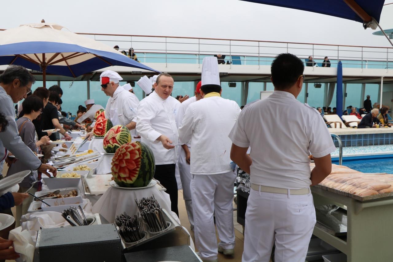 終日航海日の昼食は11階デッキでBBQパーティ