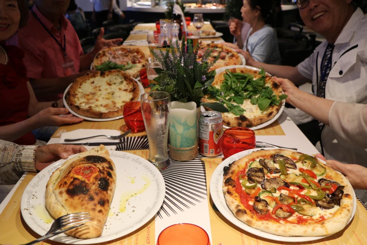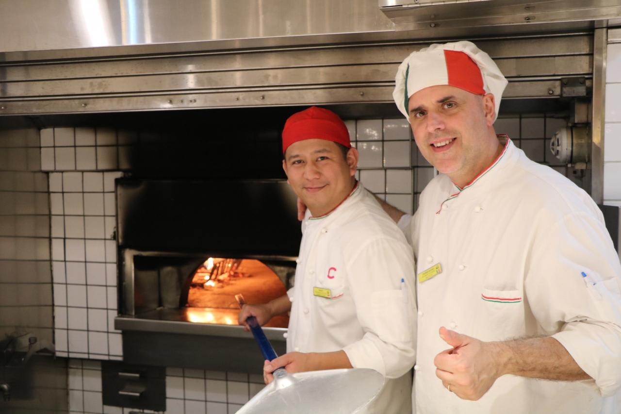 さすがイタリアの客船本格的な石窯でピザ職人によって焼かれる