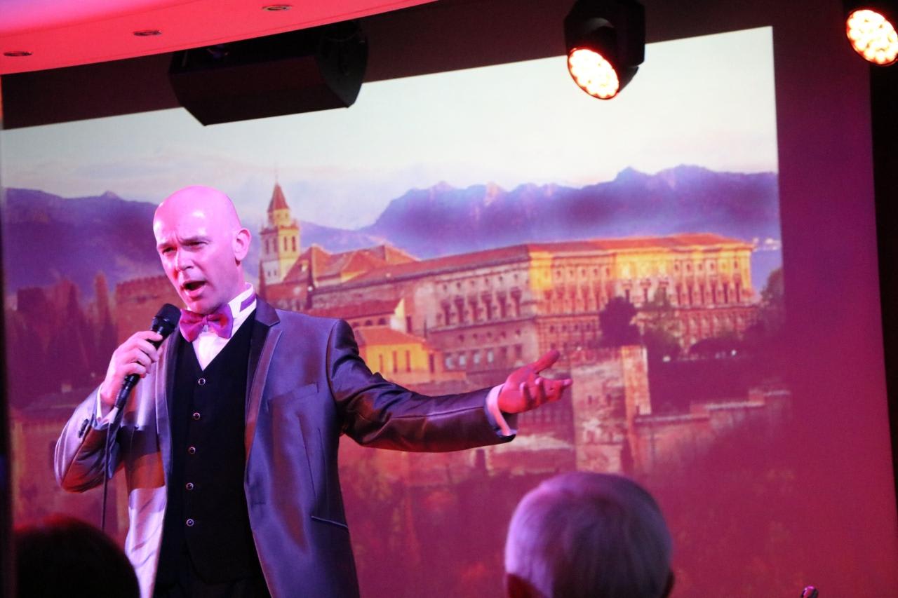 スペインのテノール歌手ALBERTO HERRANZ素晴らしい歌唱力で馴染みのあるカンツオーネなどを聴かせてくれました。セイル・アウェイ・パーティでは「Time to say good-bye」などシーンに合わせた歌を歌い、情感が伝わってきました。