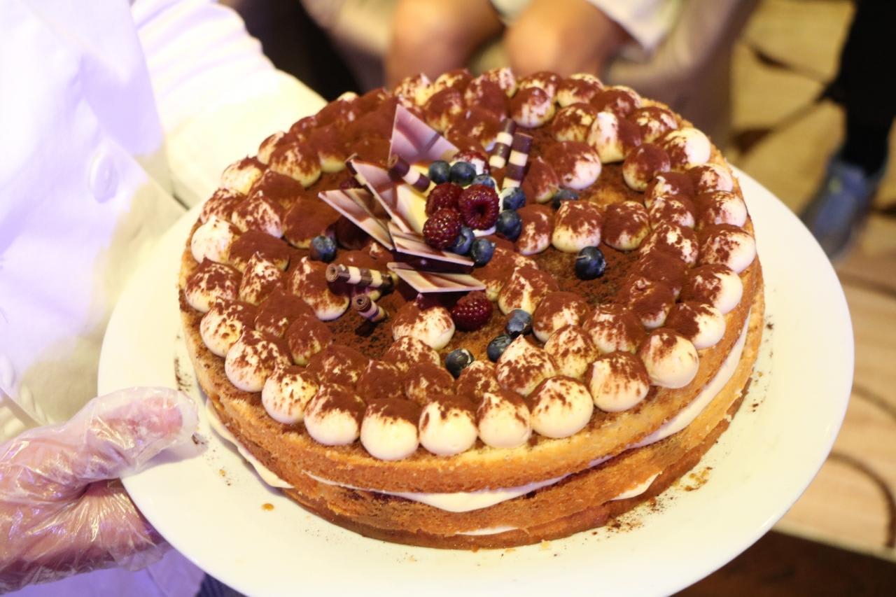 出来上がったばかりの美味しいティラミスを試食