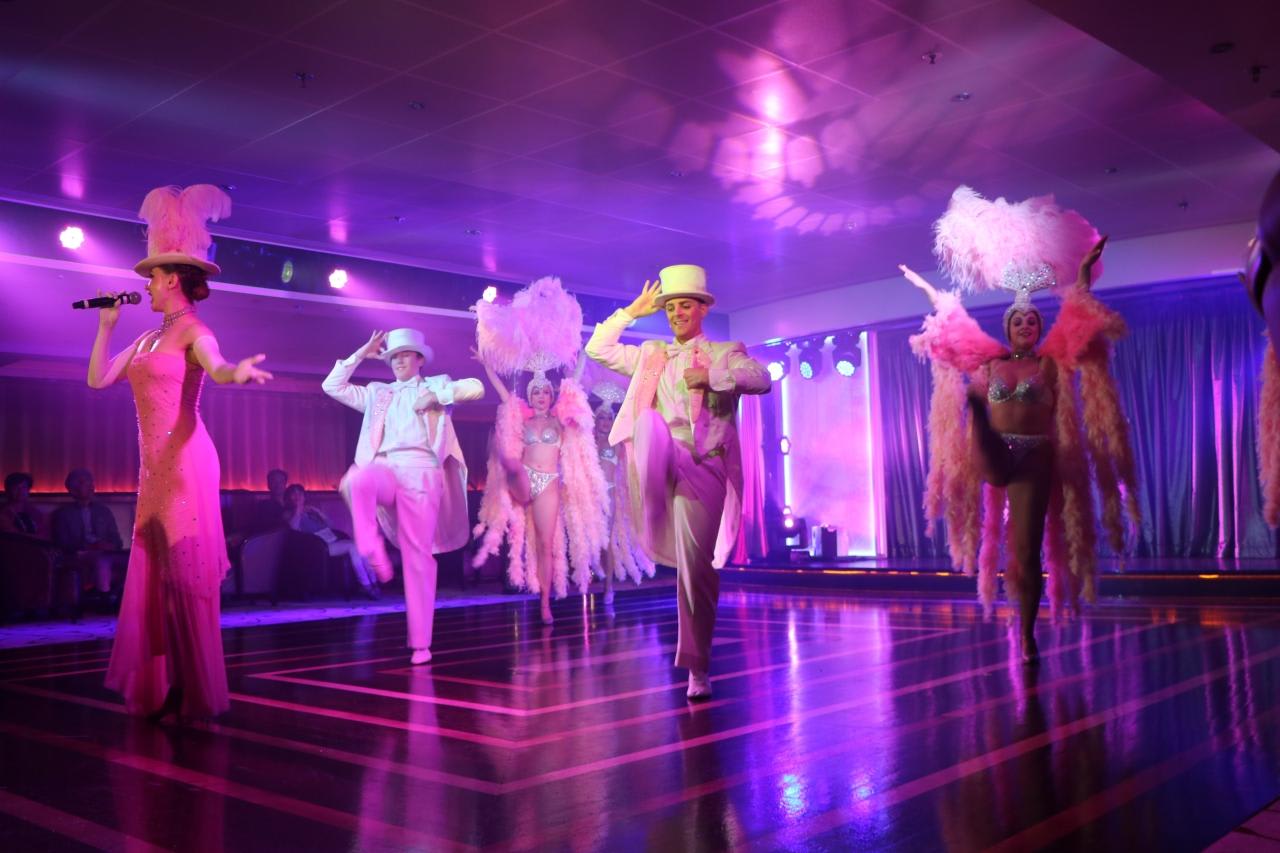 船内のラウンジやデッキでは絶え間なく多種多様なショーが開催されました。