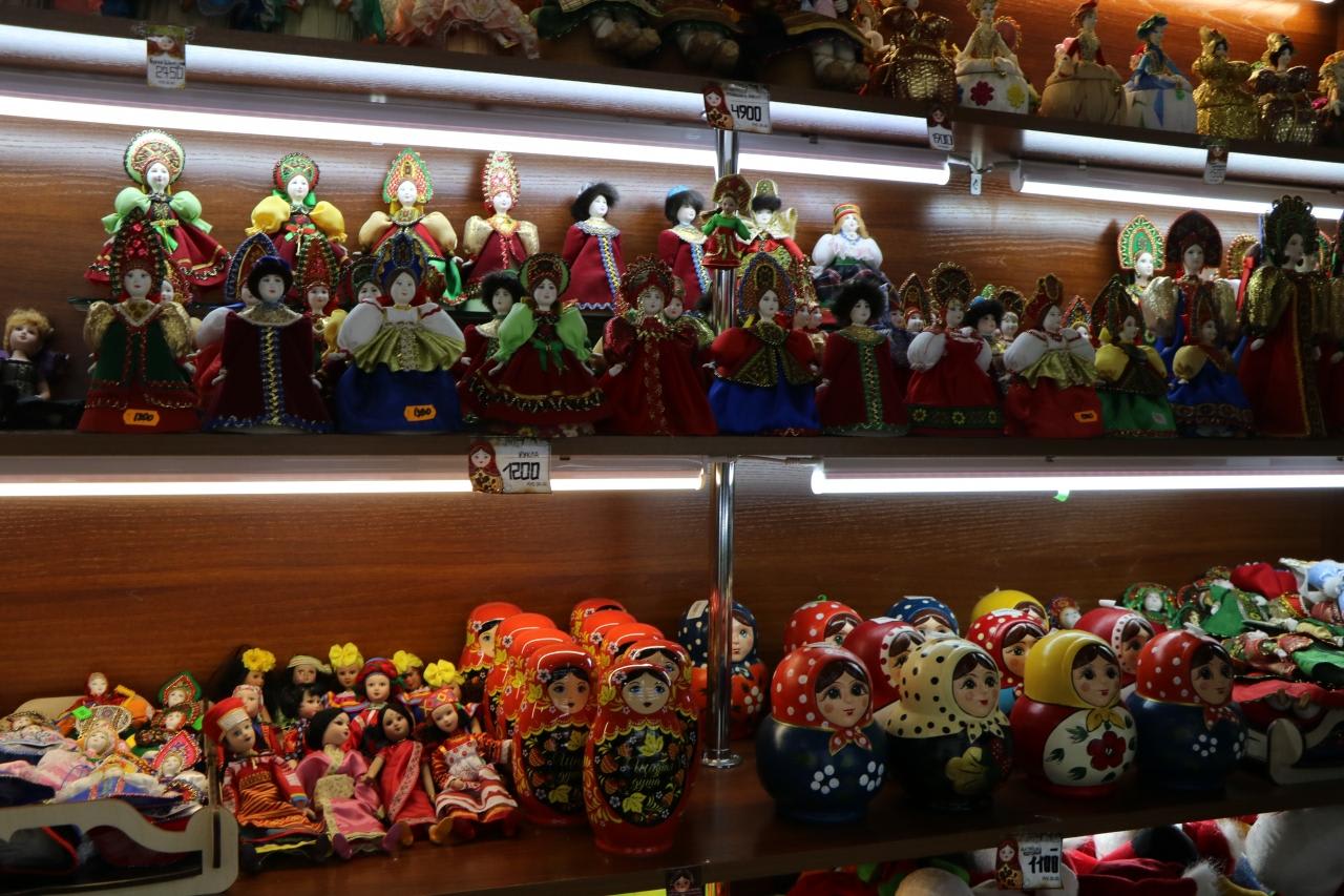 中央広場近くの土産物屋に立寄りロシア人形マトリョーシカがズラリと並んでいます。