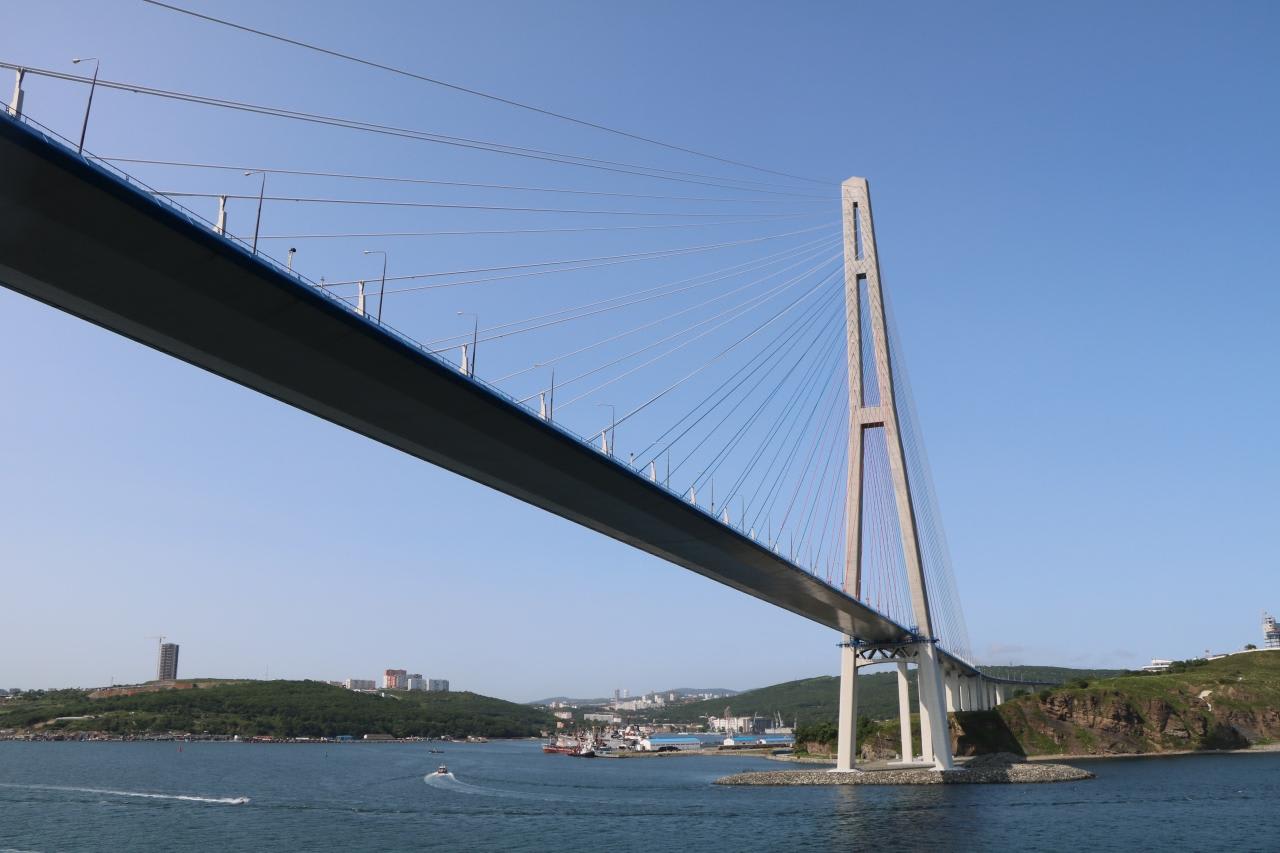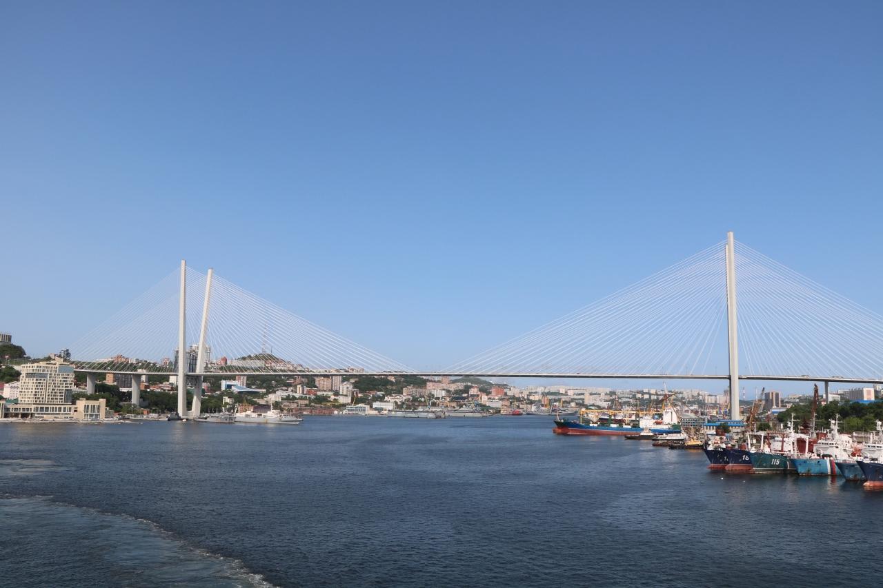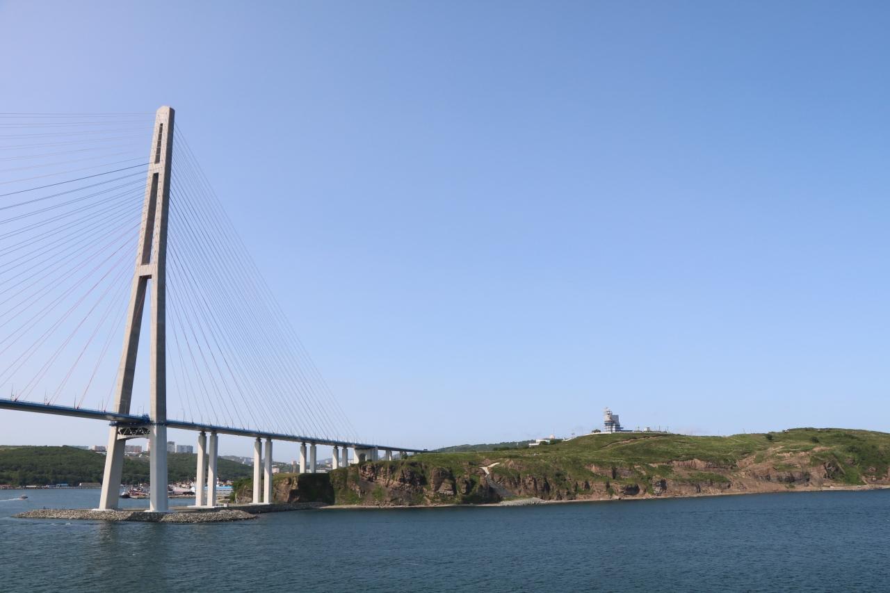金角湾をまたぎウラジオストクの中心街とベッドタウンのルスキー島を結ぶ金角湾横断橋(全長1,400m)