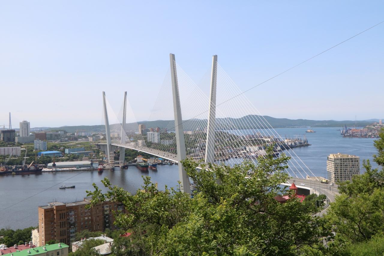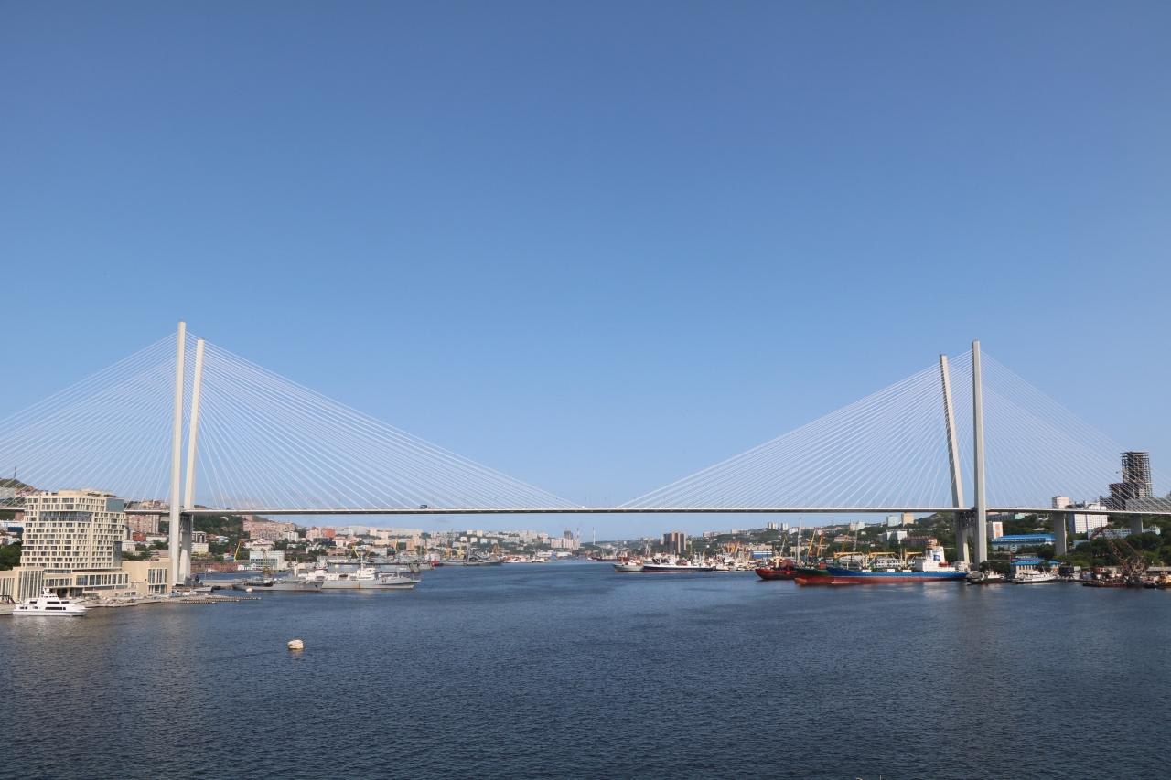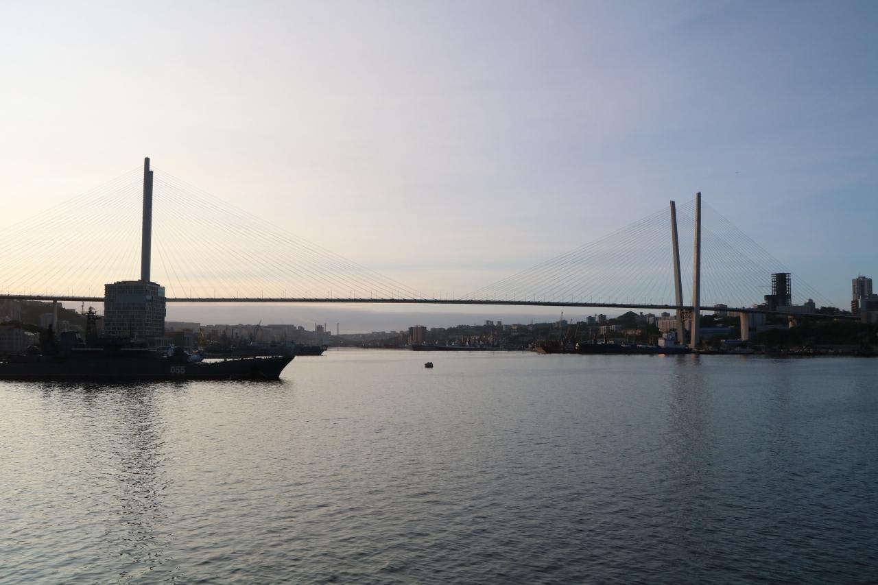 金角湾をまたぎウラジオストクの中心街とベッドタウンのルスキー島を結ぶ金角湾横断橋(全長1,400m)